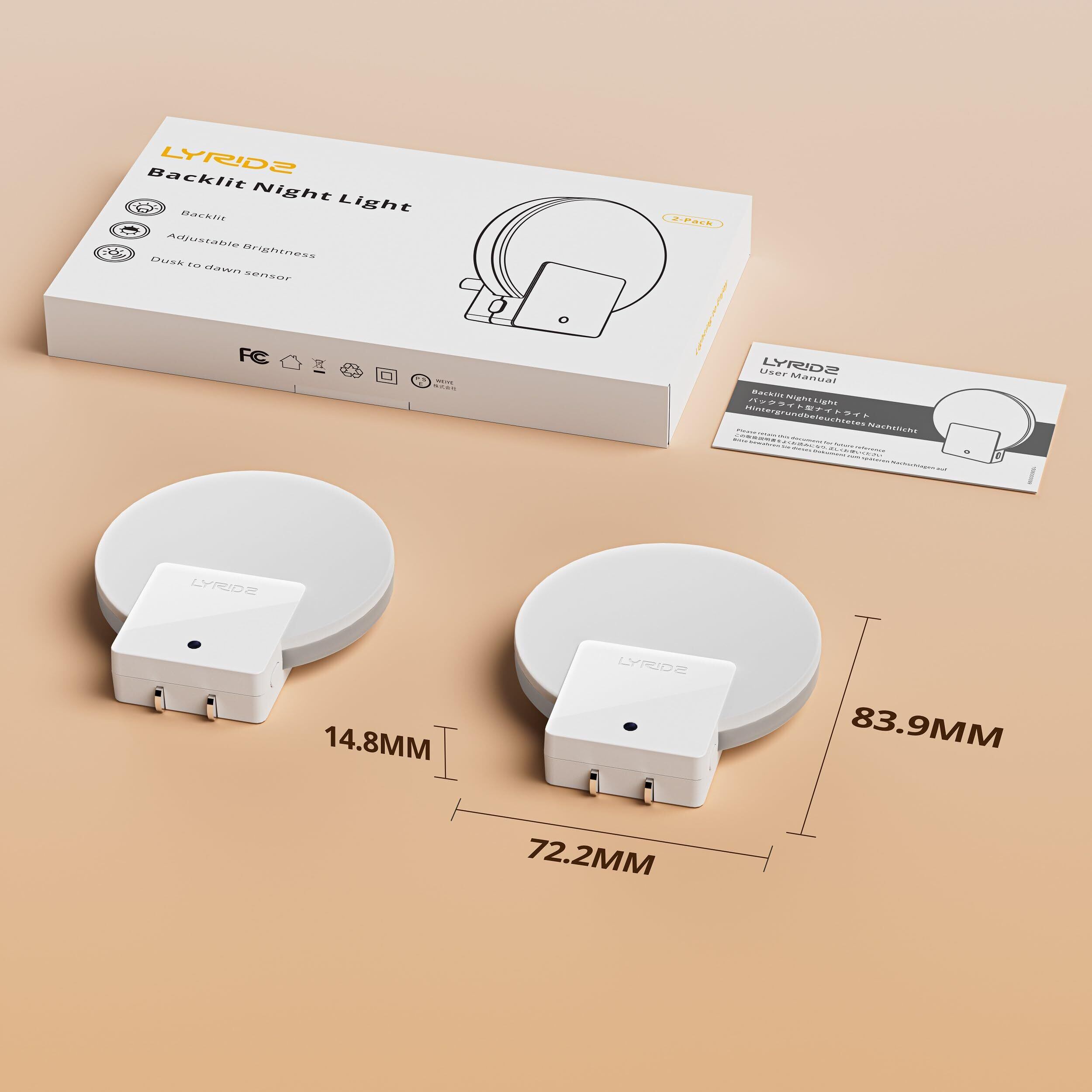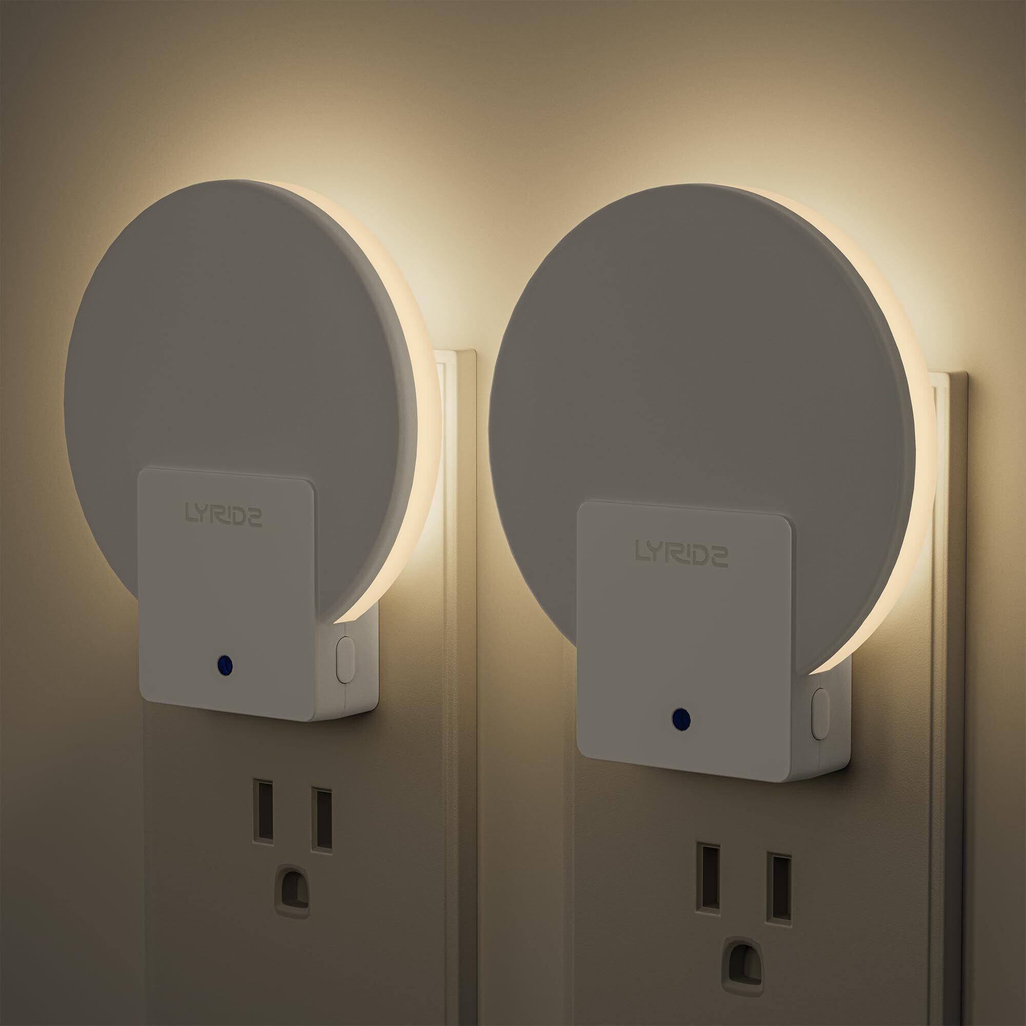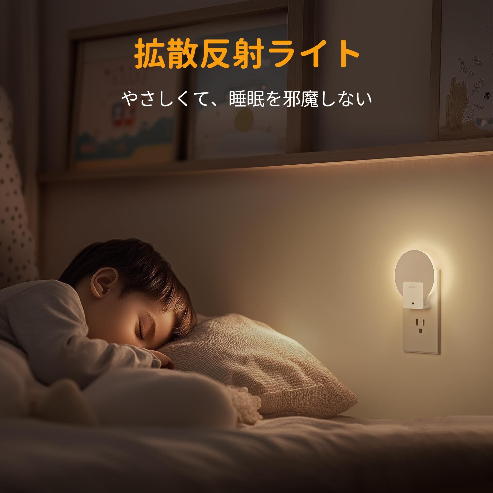 Lyridz センサーライト 室内 コンセント バックライト型 常夜灯 明暗センサー 明るさ調節可 足元灯 夜間常時点灯 ナイトライト 省エネ 玄関 廊下 段階 洗面台 電球色 (2個入り)