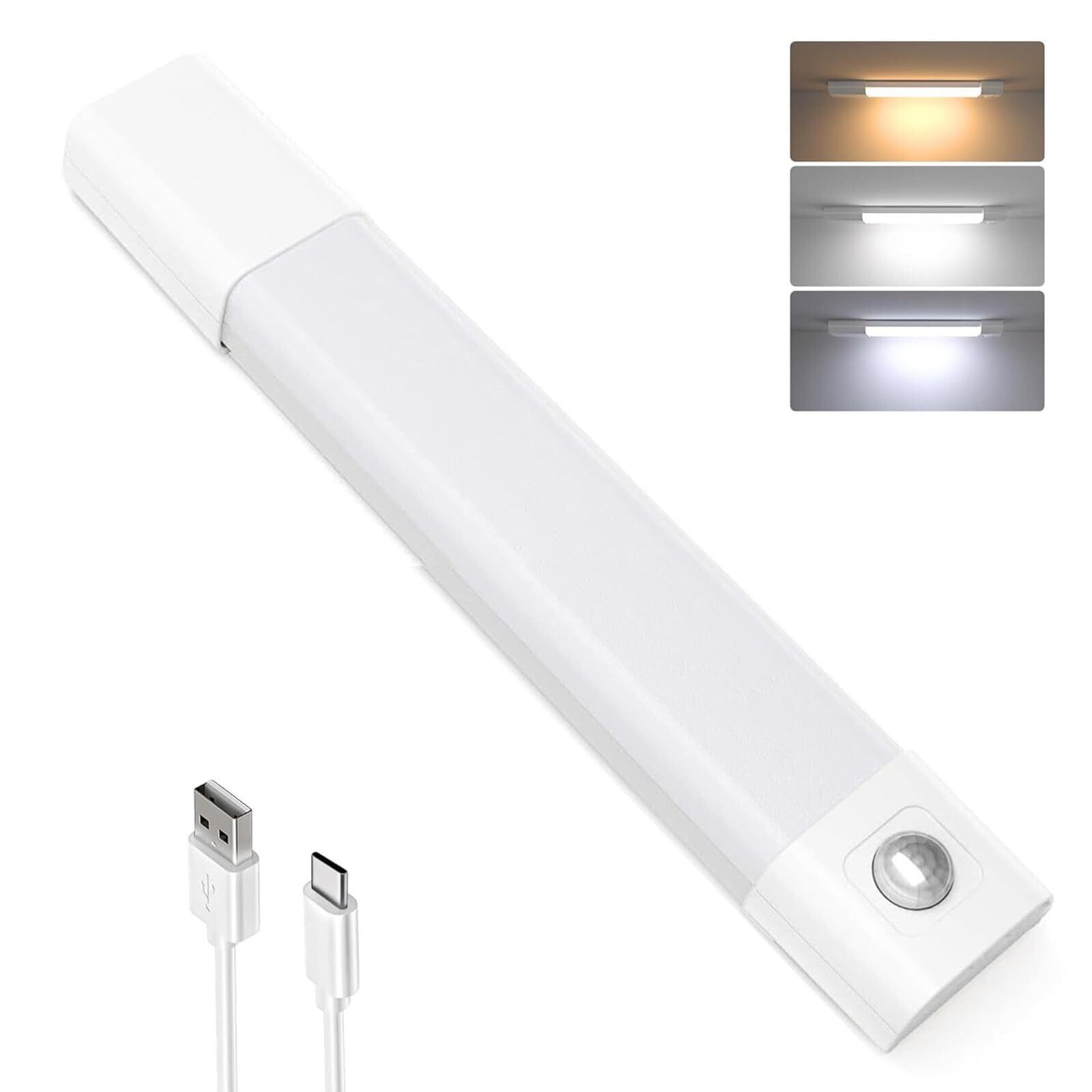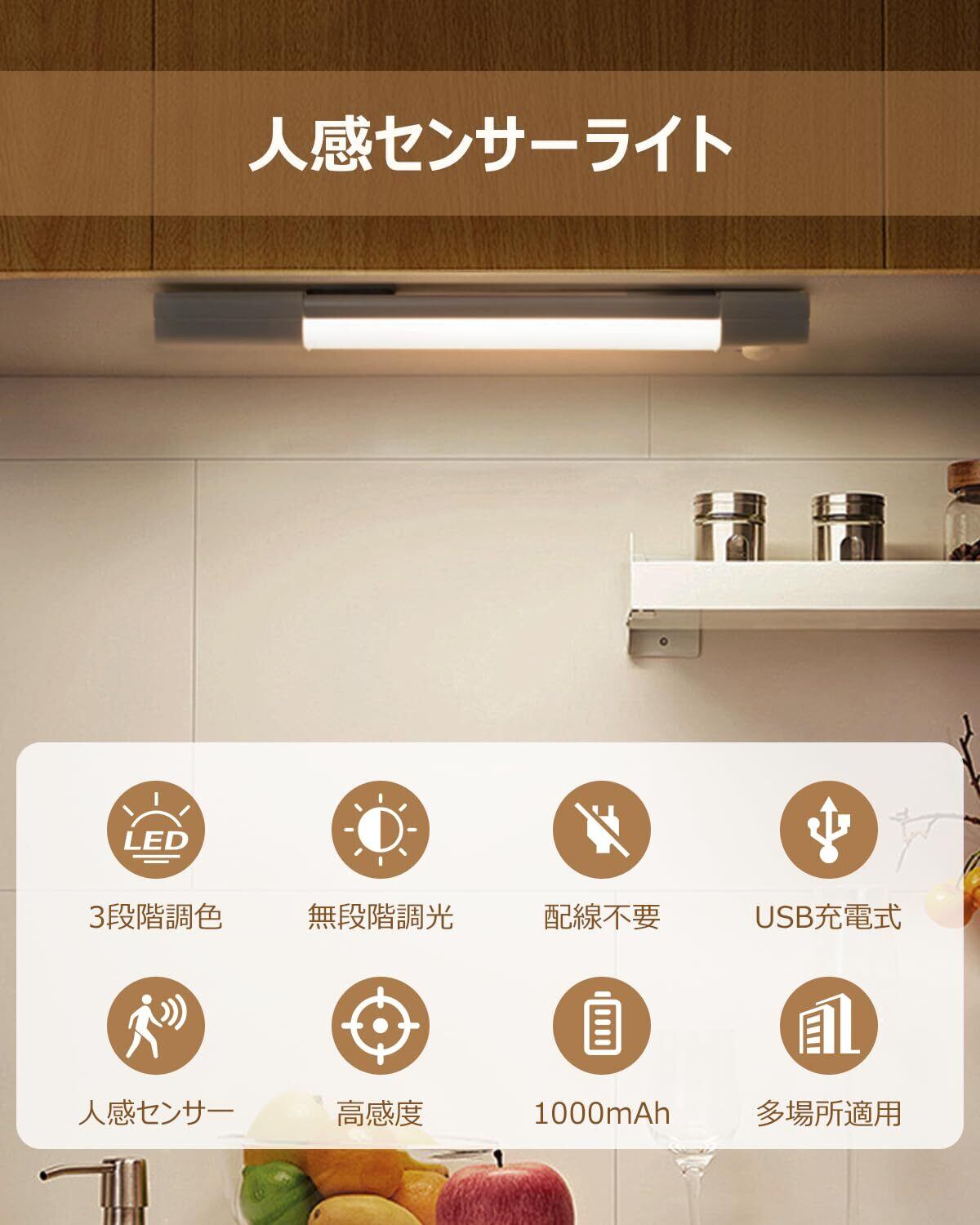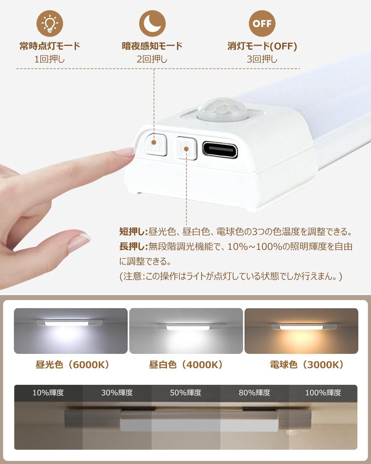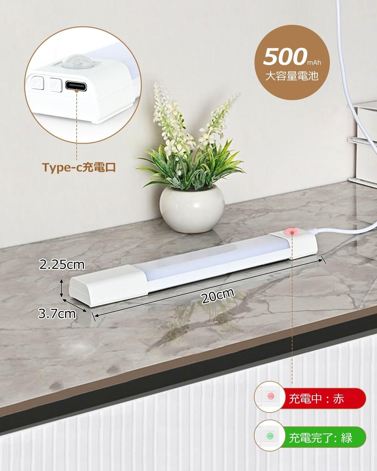 じんかんせんさー ライト 室内 センサーライト 充電式 20cm マグネット クローゼット/階段/玄関/廊下/キッチン 照明 3色調節 無段階調光 Type-C充電 式 簡単取付 配線不要 高感度センサー 省エネ (ホワイト1本)