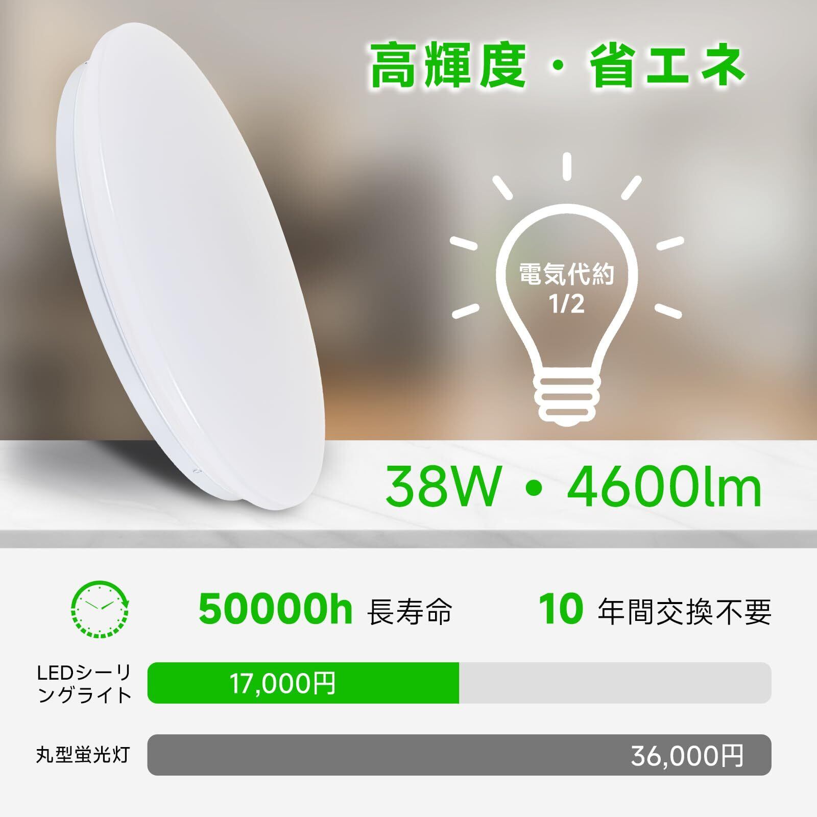 NAONE LEDシーリングライト 8畳 38W 4850LM しーりんくシーリングライト 天井照明器具 おしゃれ 蛍光灯 調色/調光タイプ 昼光色 電球色 リモコン付き 調光タイプ LEDライト 常夜灯モード メモリ機能 15分/30分/60分スリープタイマー 玄関 寝室 和室 台所 洗面所