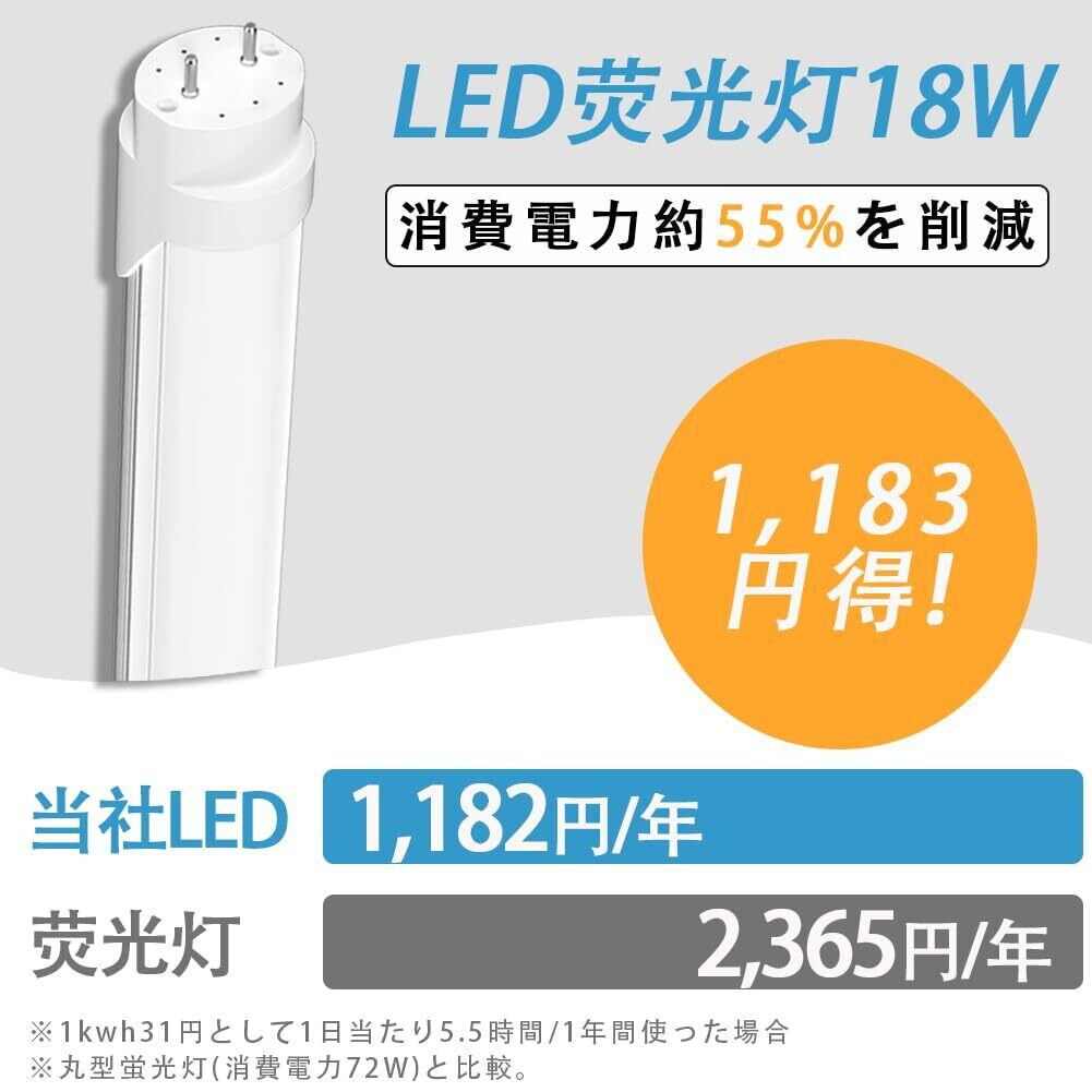 LED蛍光灯 40W形 T8直管 120cm 両側給電 昼光色 6500K 消費電力18W 口金G13 天井照明 高輝度2600LM グロー式工事不要 PL保険(メーカー二年) 家庭、学校、病院、事務所、工場、倉庫に適用 10本入り