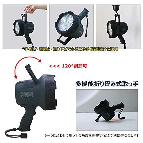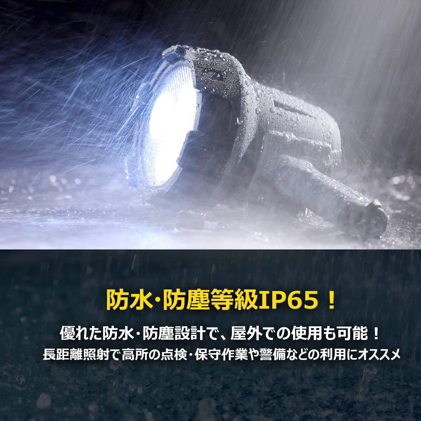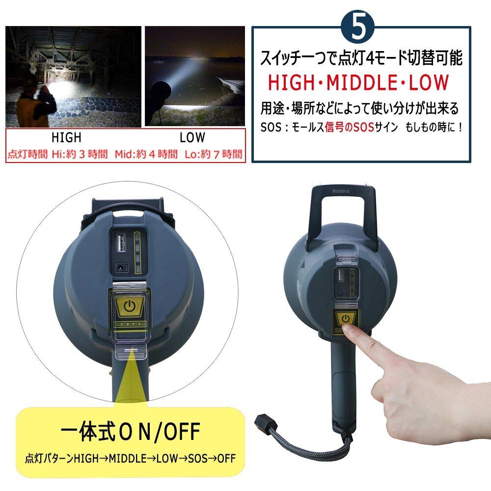 【最長照射距離約900m、超遠距離タイプの登場】光を集中させる漏斗式反射板を採用により、狭角15°配光で超遠距離900m付近まで到達!充電式・コードレース!電源の取れない場所でも大活躍!点灯時間最長8時間!夜間作業を強力サポート!