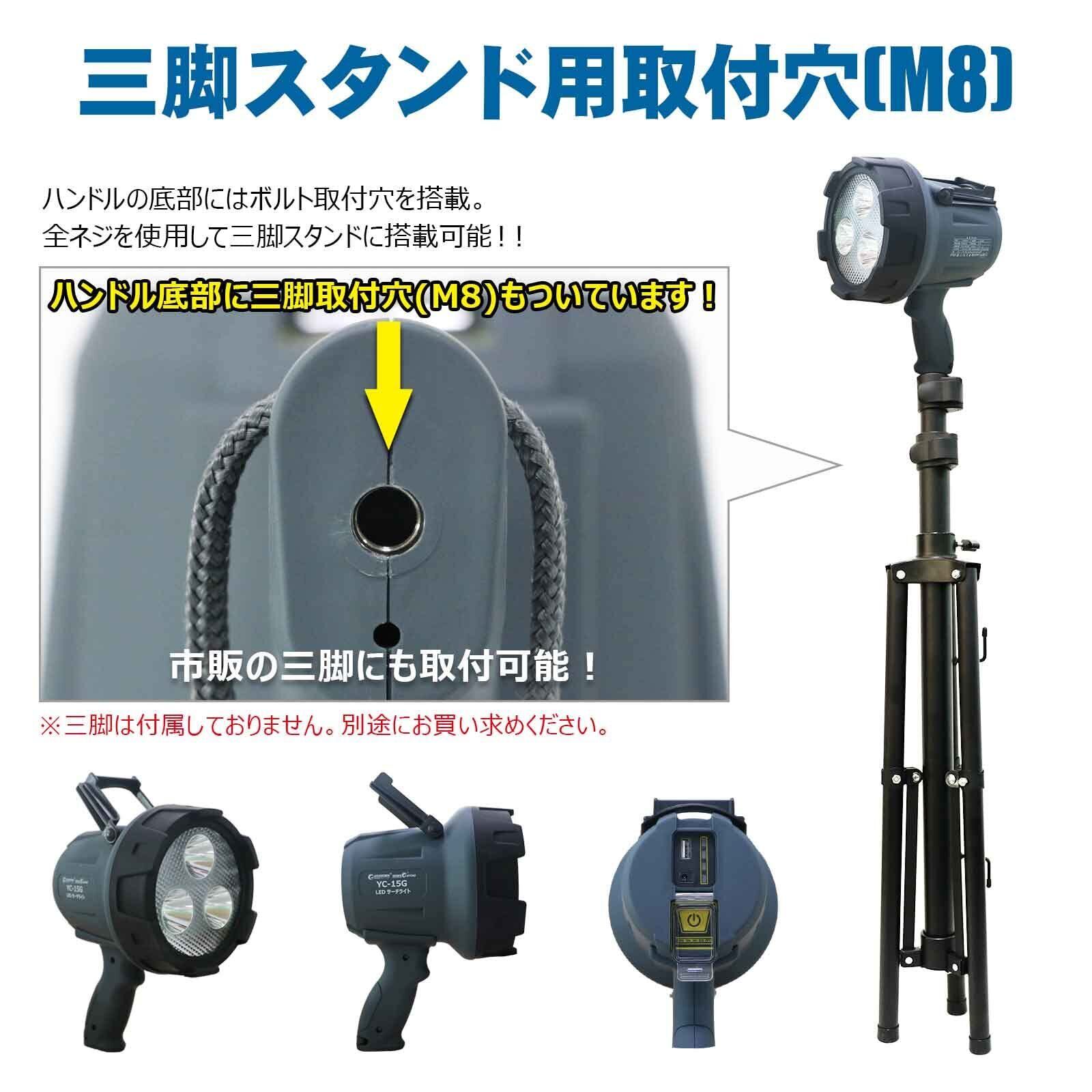 グッド・グッズ 15W LED 充電式 懐中電灯 ライト 遠距離照射 作業灯 スマホ充電 高輝度 ワークライト 省エネ 駐車場 ガレージ 倉庫 BBQ 屋外作業 野外 熊対策 工事用 夜釣り キャンプ 防災グッズ 台風 地震 停電対策 停電 避難対策 防災 防災用品 YC-15G