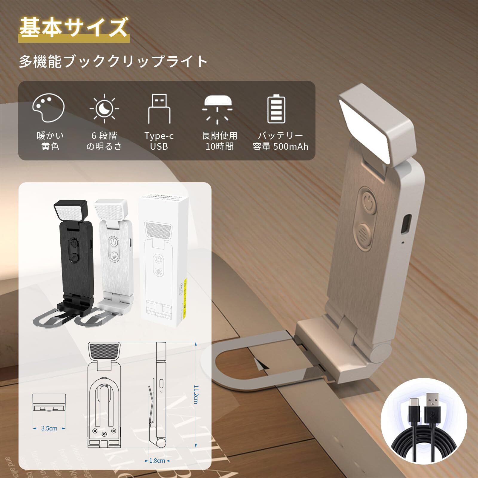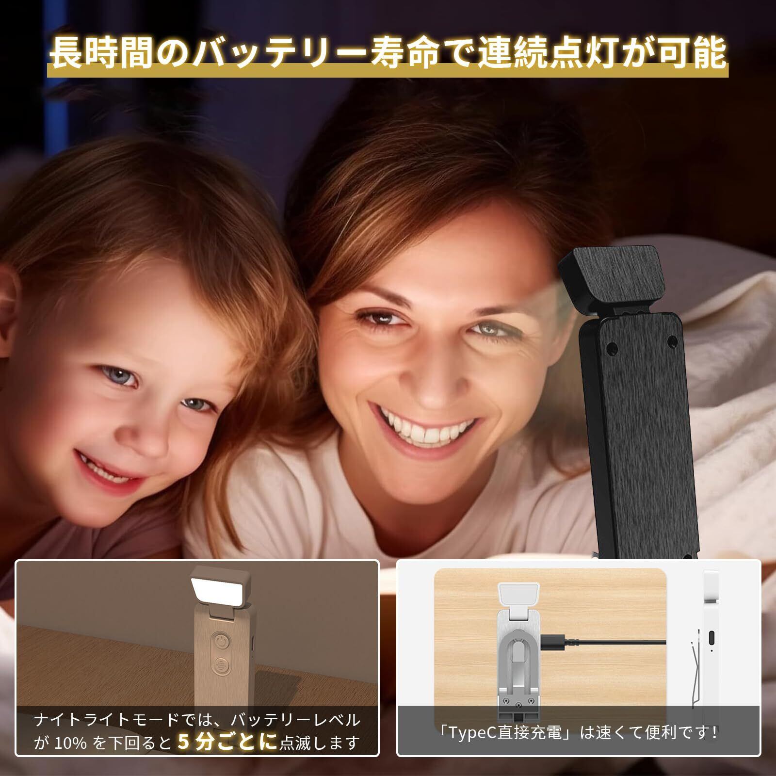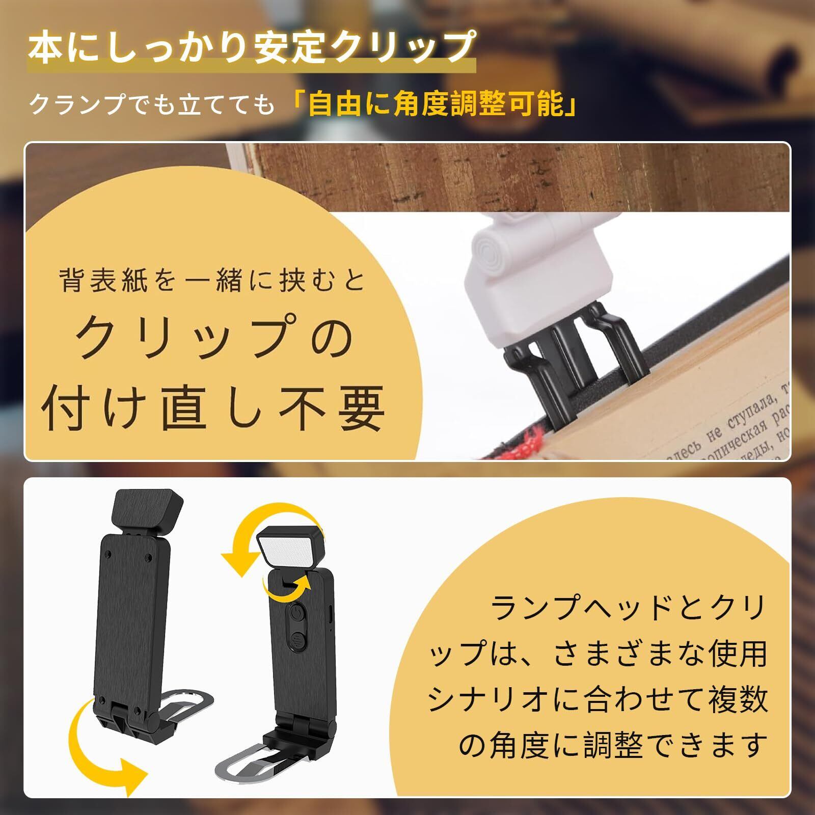 読書灯 ブックライト 6段階調光 ベッドの読書のため クリップ LED 充電式 USB-C 読書 ライト 小型で 耐久性があり 旅行持ち運びが簡単 低電池タイマーリマインダー機能 本の愛好家 子供に最適 (ブラック)