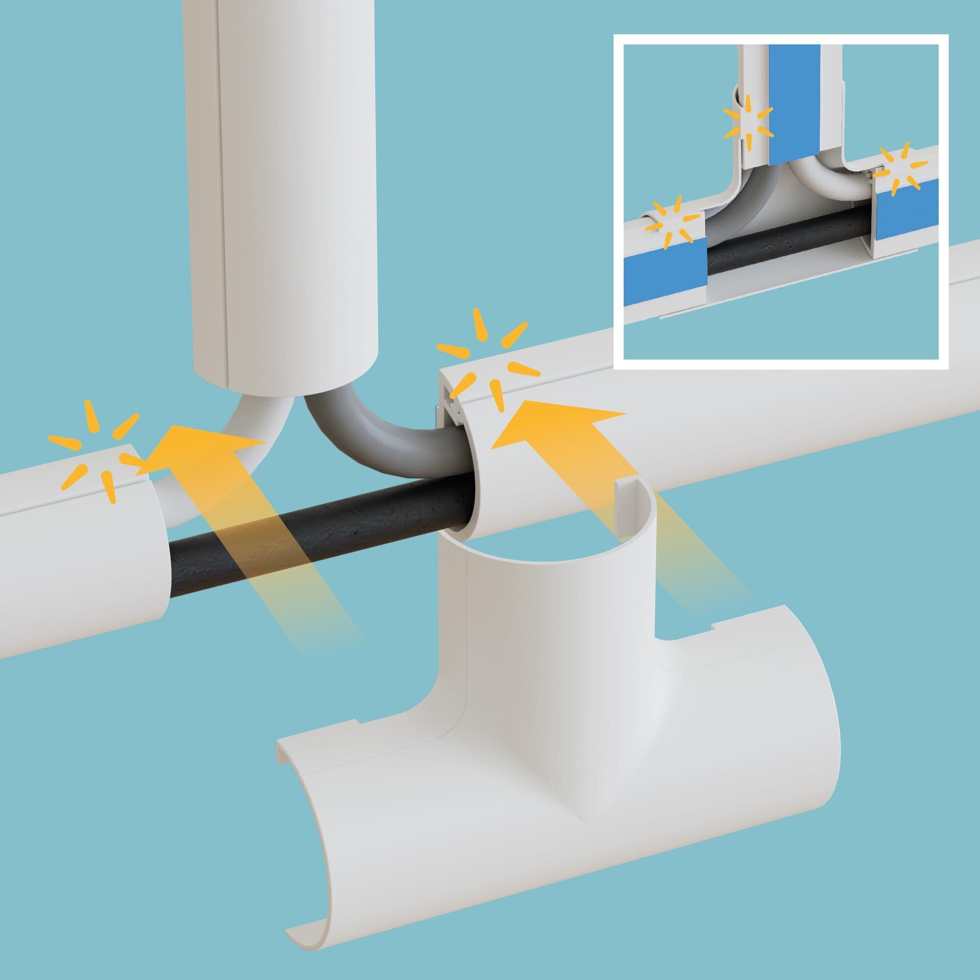 ジョイントパーツ付き 19個のジョイントパーツが付き、あらゆる角度の配線をスッキリ整理します。後部のグリップタブでしっかり固定され、曲げ部やT字部の設計により、多少の寸法誤差もカバーします。