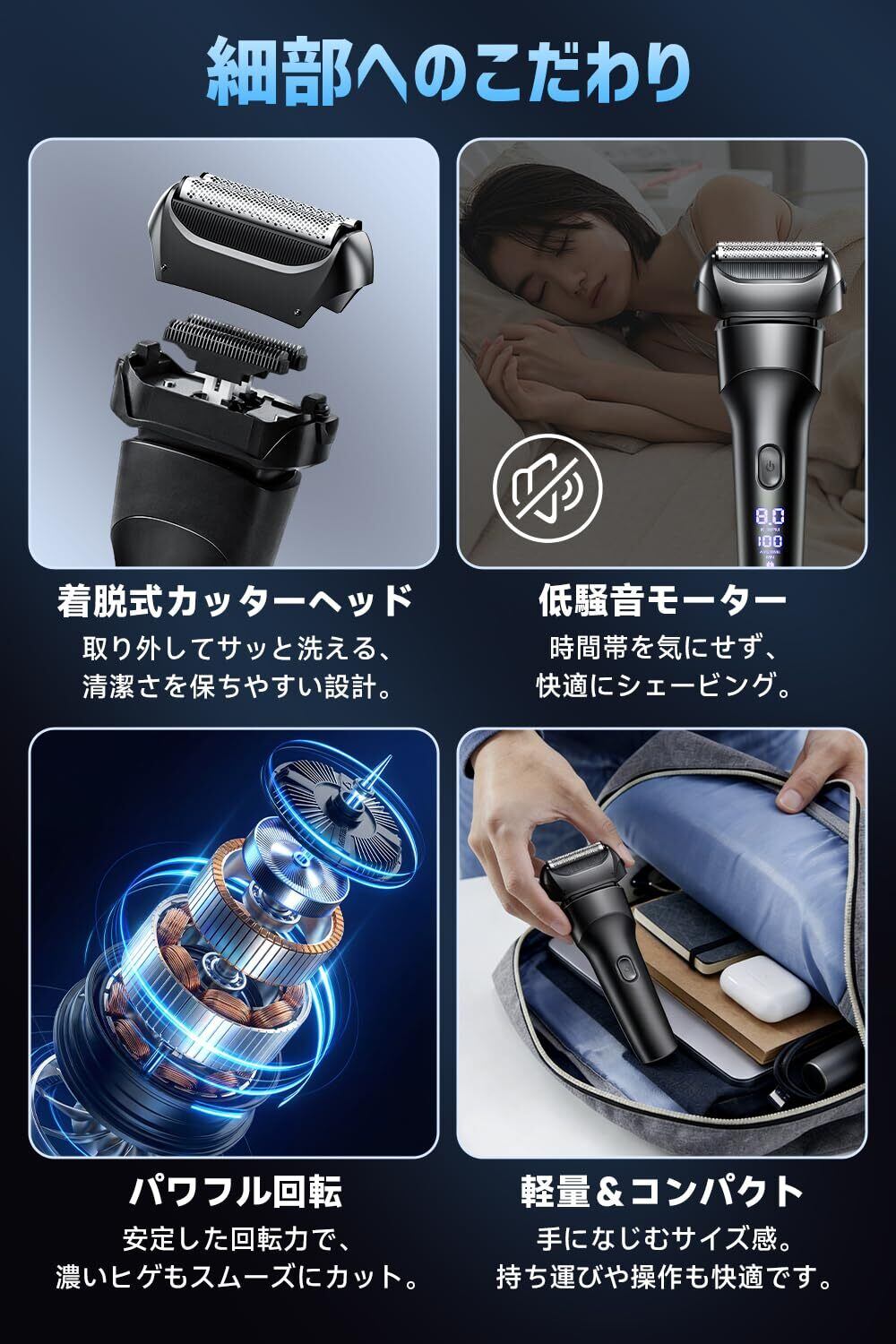 【高速モーター搭載・パワフル&低騒音】この メンズシェーバー はパワフルな 高速回転 モーター を内蔵し、濃いヒゲや硬い髭もスムーズにカットできる 電動シェーバー です。安定した剃り味で短時間でもしっかり剃れるため、忙しい朝の身だしなみにも最適。さらに 低騒音 設計により、早朝や夜間でも周囲を気にせず使用できます。毎日快適に使える 電動髭剃り です。