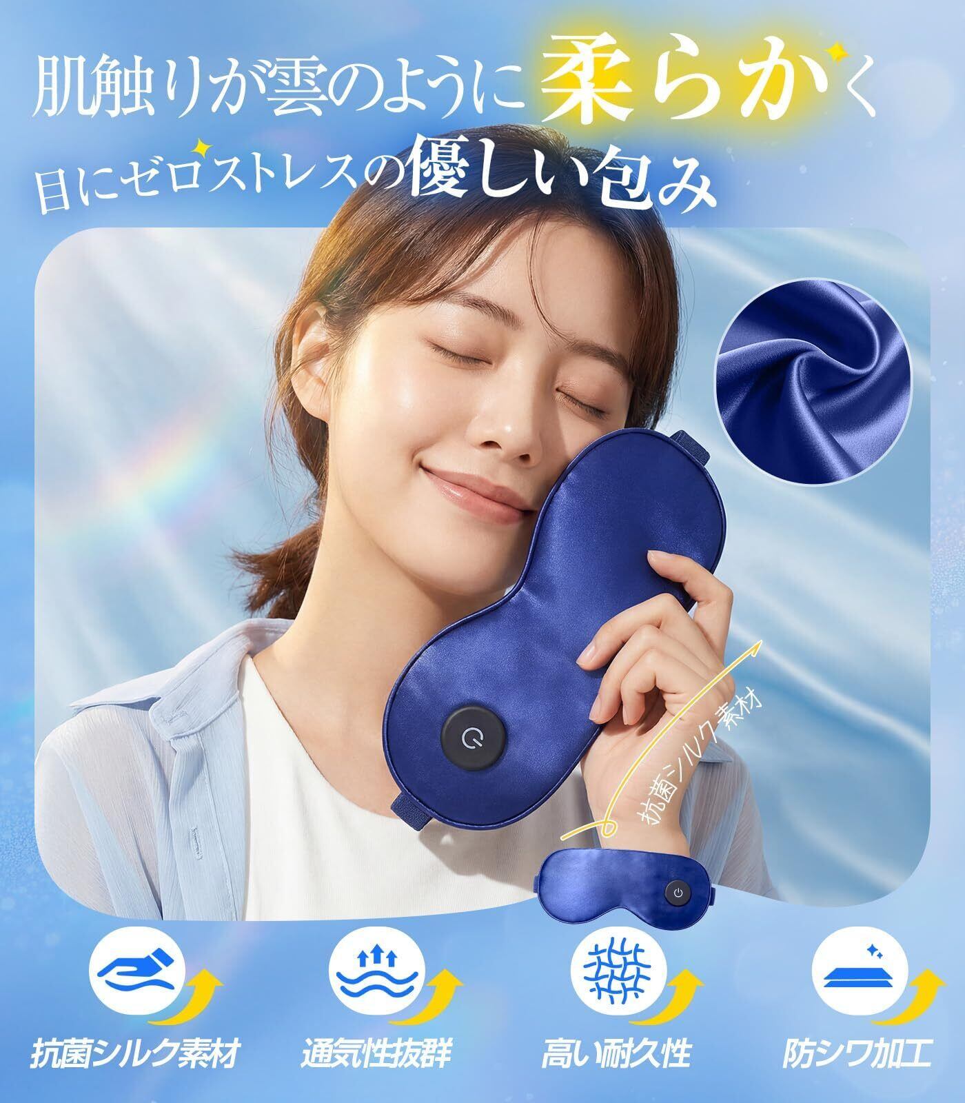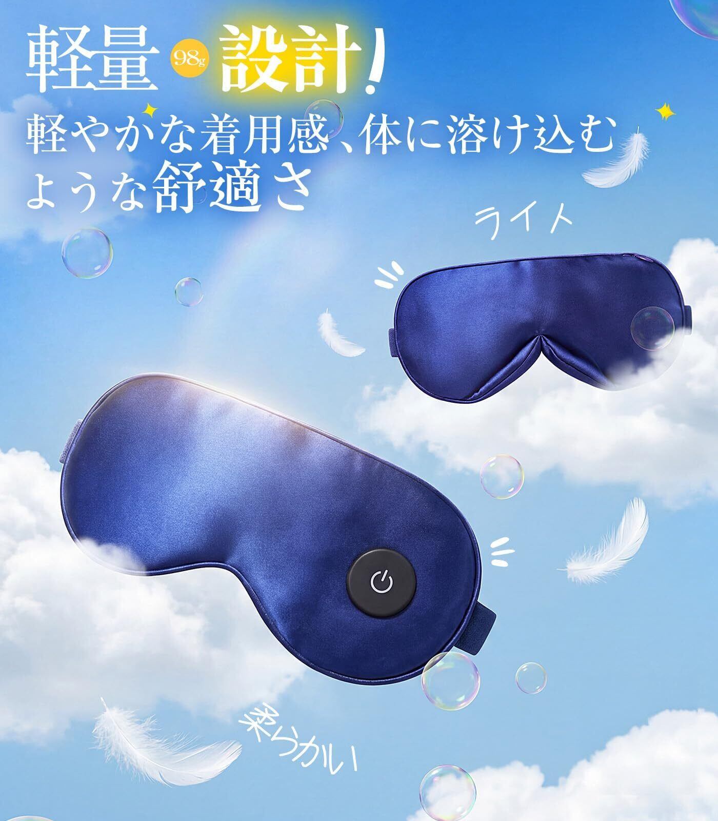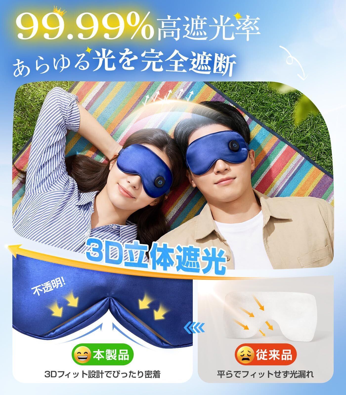 ホットアイマスク 充電式アイマスク 睡眠用 30min自動オフ 3D立体型 99.99%遮光 目の疲れ解消 コードレス 46-58cm長さ調節可能 eye mask お手入れ可 旅行 リラックス 快眠グッズ プレゼント 男女兼用(ネイビー)