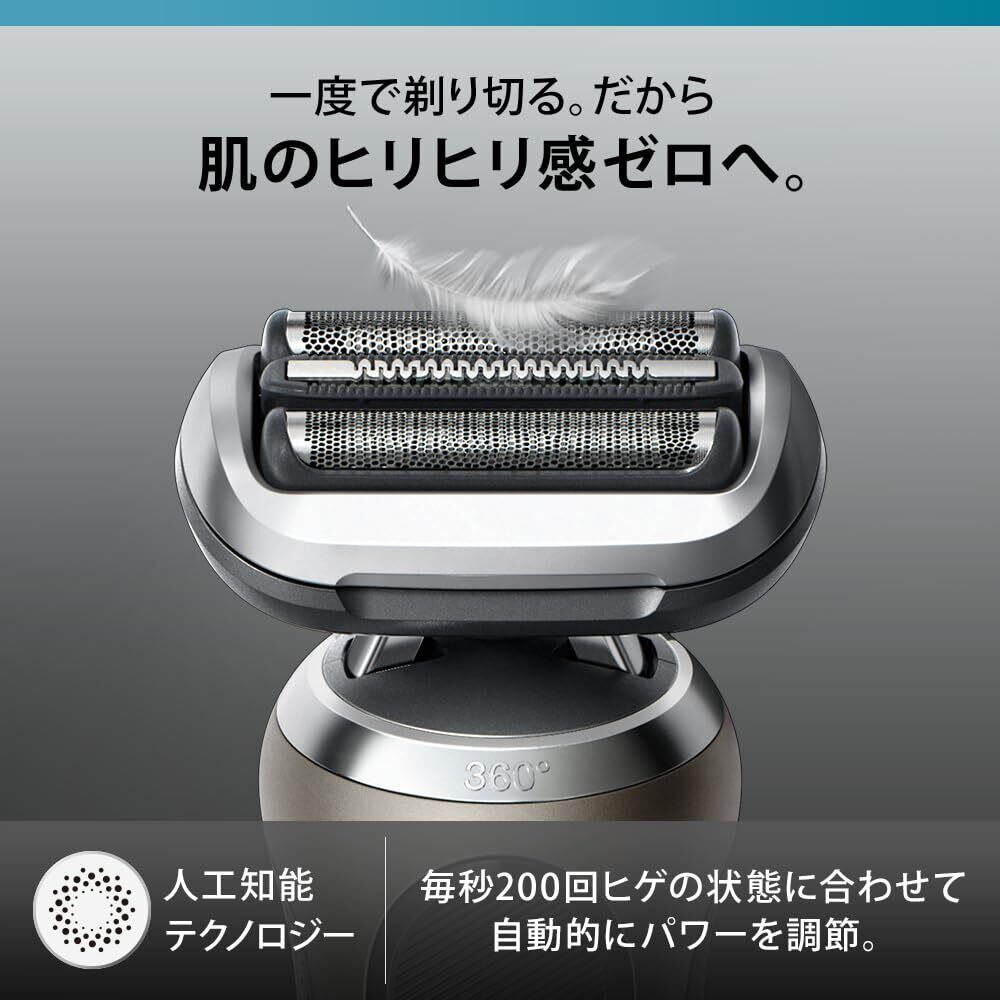 シリーズ7は360°密着システムを搭載。”3つの刃の浮き沈み”、”前後の首振り”に横の動きも加わった究極の密着性を実現。全方位への動きが可能となり、密着が難しく、剃り残しが気になるあご下や鼻下でも密着します。あご下の剃り残しゼロへ