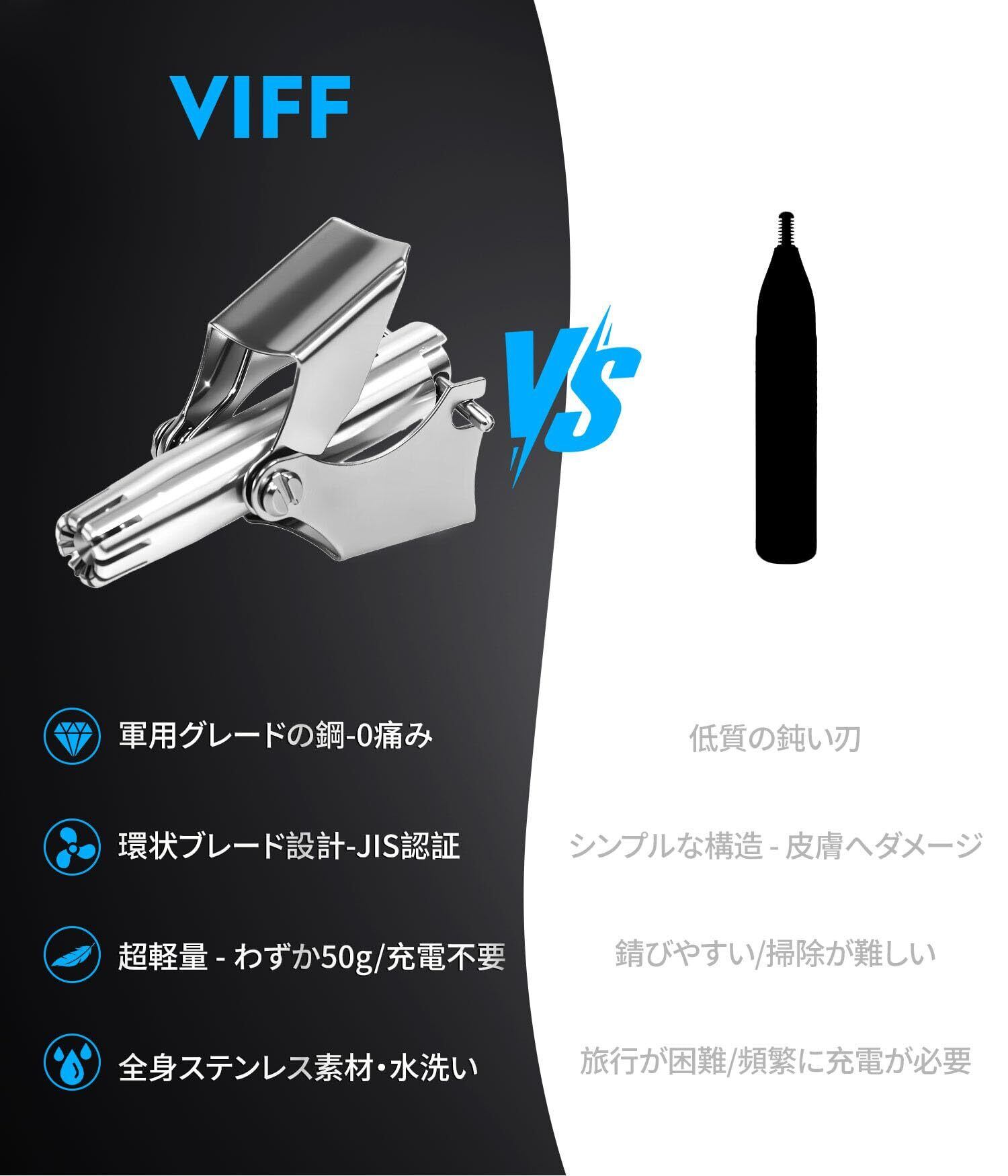 VIFF 5.0 鼻毛カッター 鼻毛切り 手動電動鼻毛切りより安全で切れ はなげカッター充電不要 全身水洗浄 3秒で印象革新