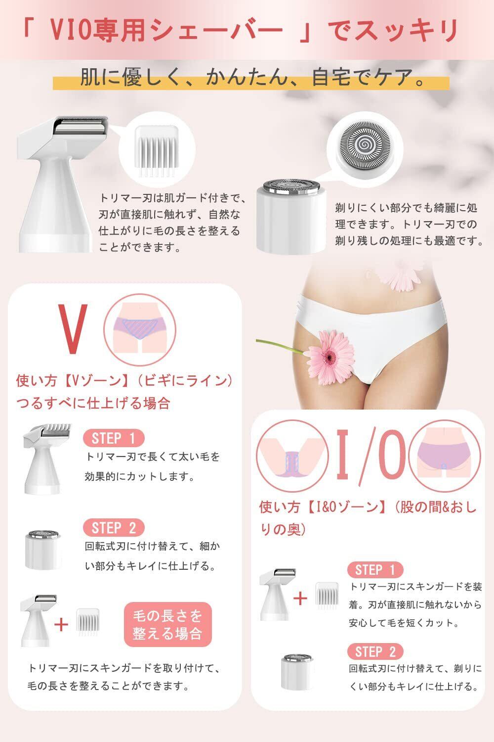 電気 シェーバー 女性 レディース vio 専用 USB充電式 1台5役 眉毛 鼻毛カッター 多機能 電動 ムダ毛処理 顔 脇 腕 ビキニライン 背中 足 全身用脱毛器 水洗い可能 携帯に便利