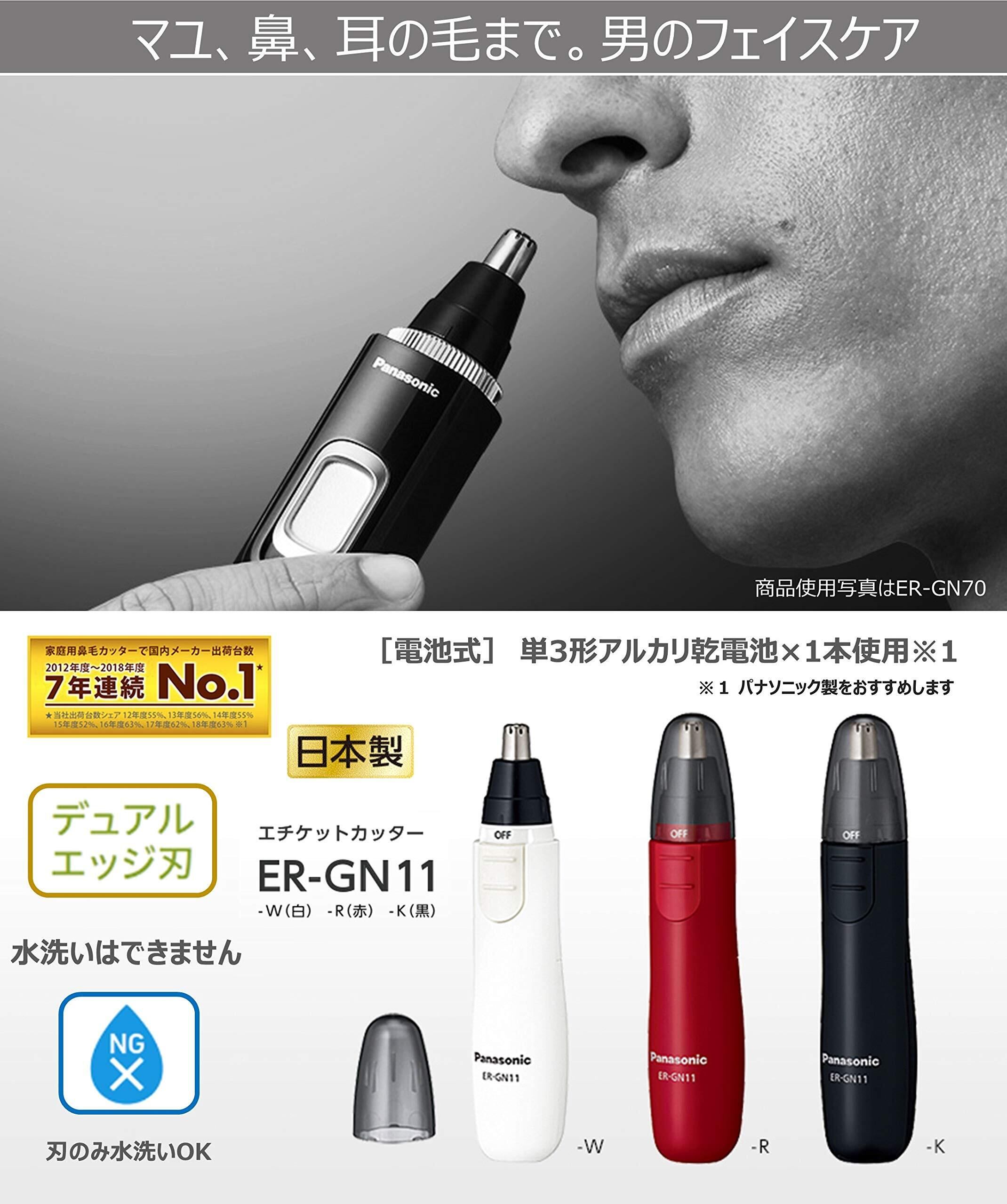 パナソニック 鼻毛カッター エチケットカッター メンズ 眉毛 ヒゲ 耳 ER-GN11-K
