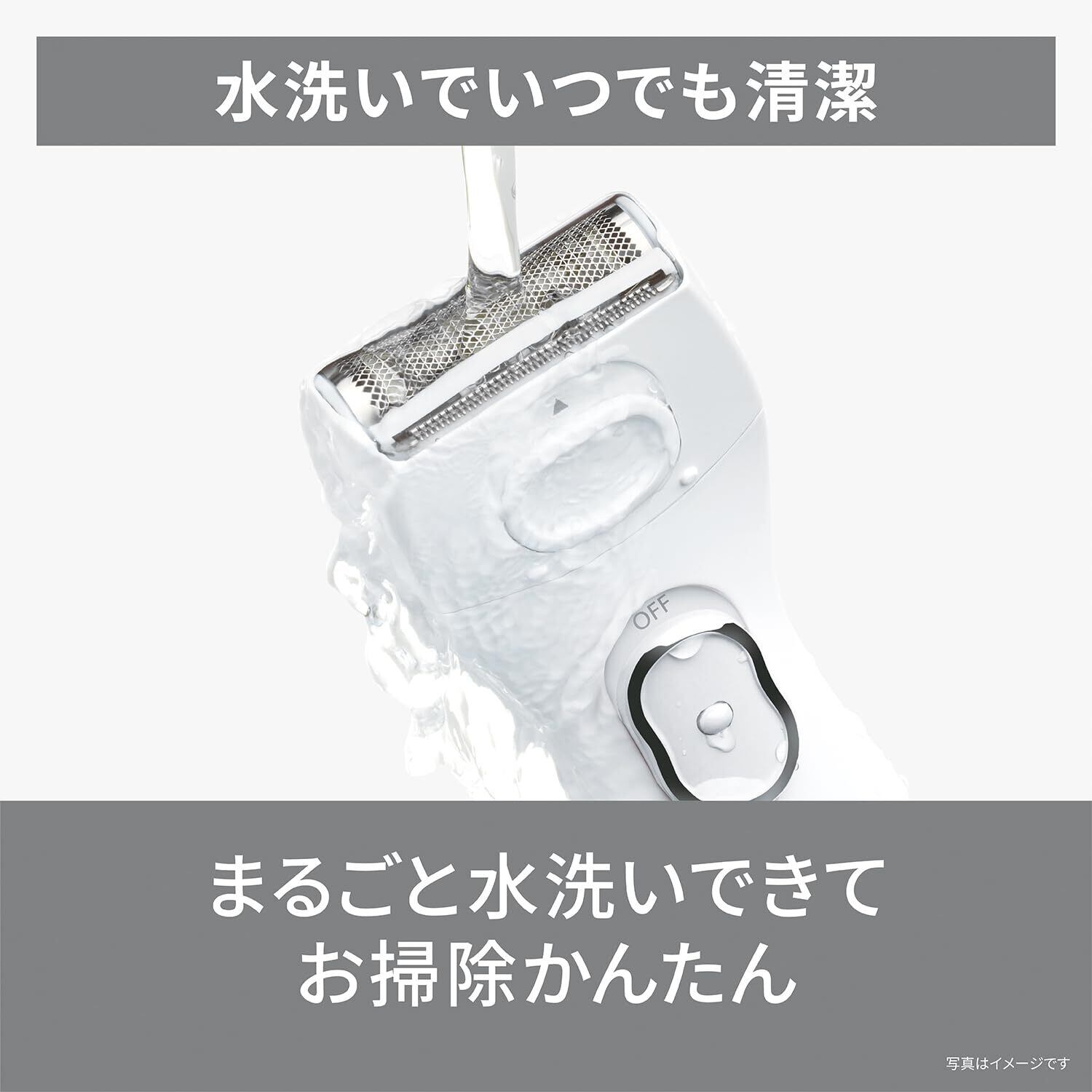 ●IPX7基準(※IPX7基準(水深1 mに30分間水に浸けても有害な影響を生じる量の水の浸入がない)検査をクリアしています。※)の防水性能で、お風呂で使える。ドライ剃りなら肌を濡らさず、サッとお手入れも。