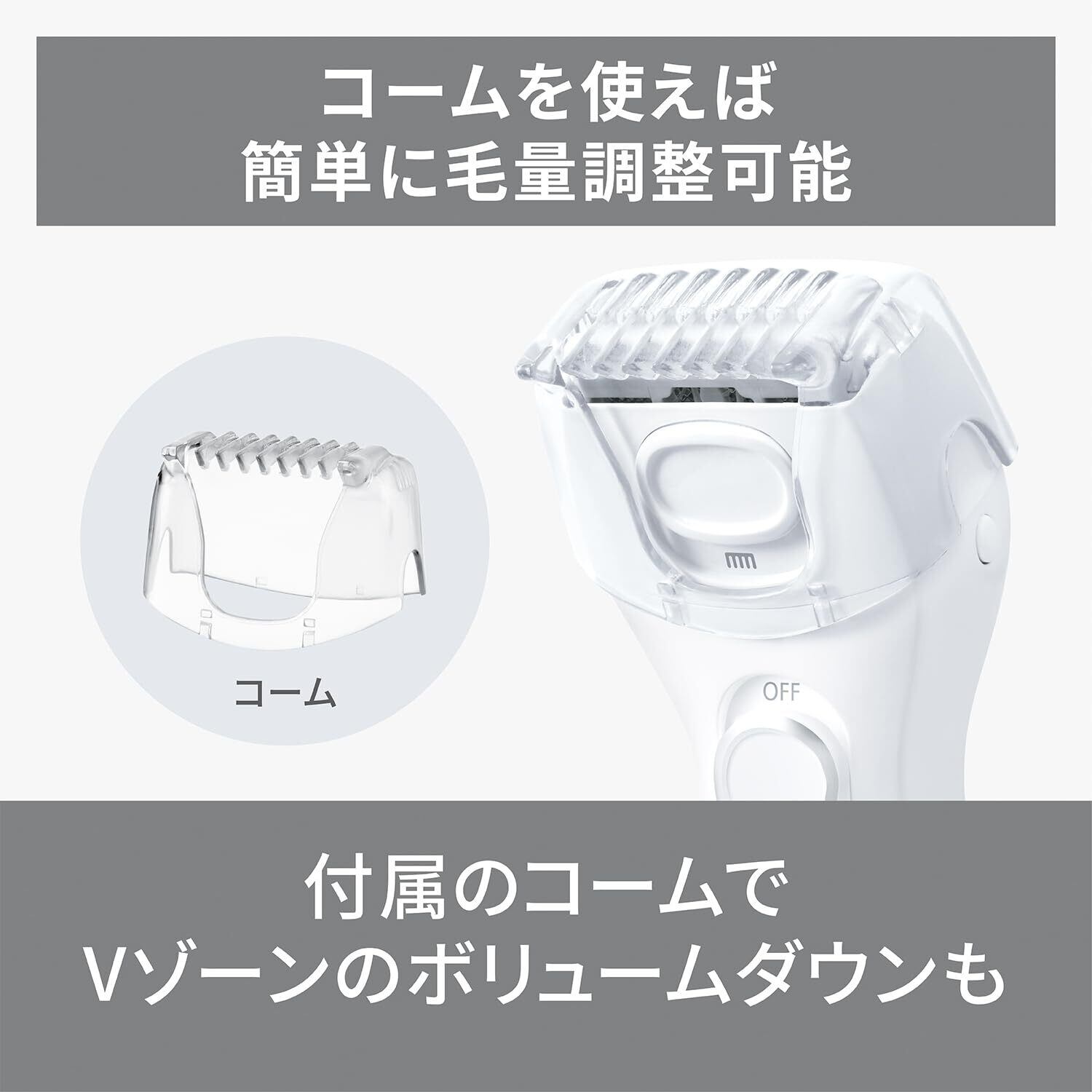 ●付属のコームで、Vゾーンのボリュームダウン。