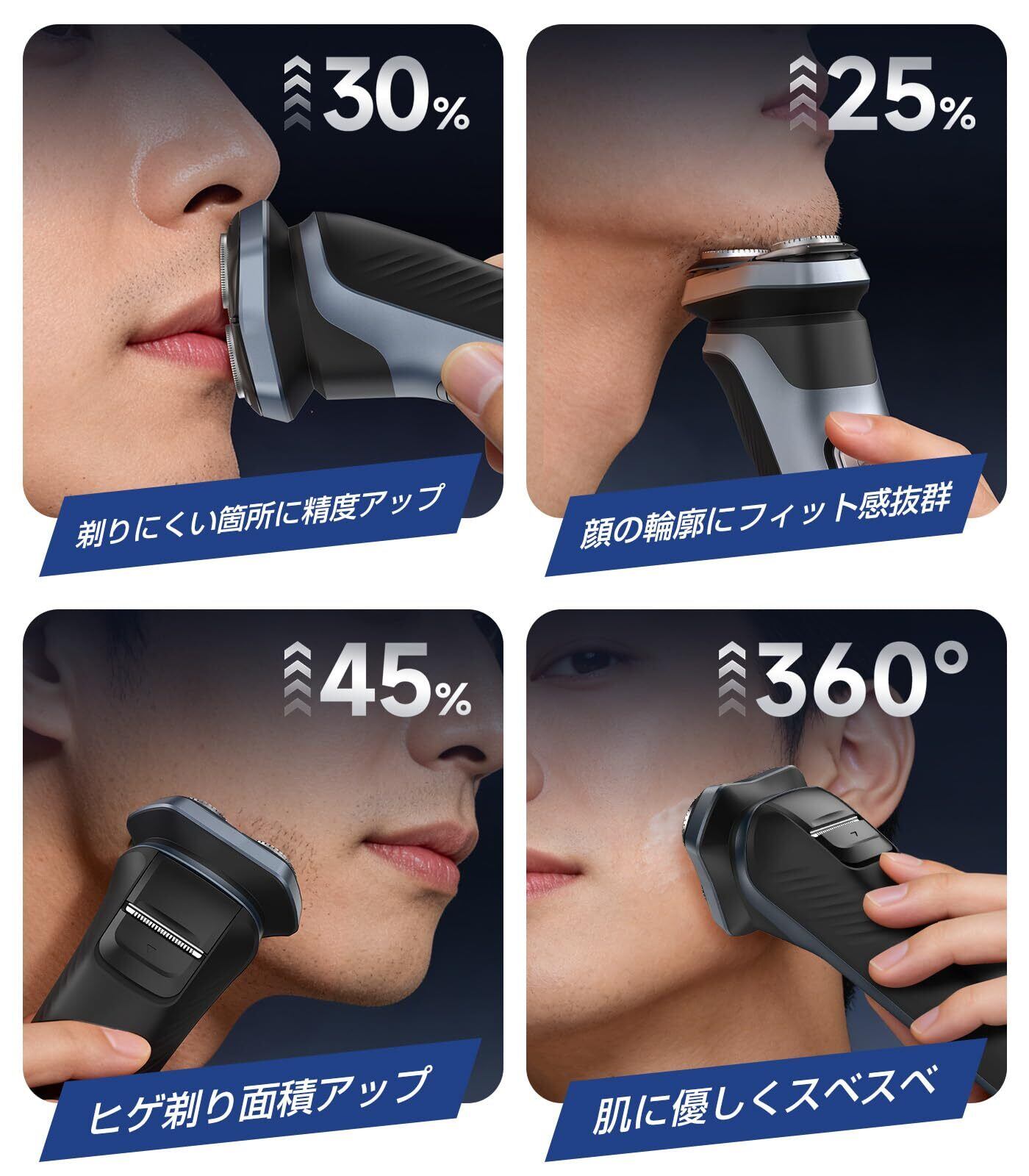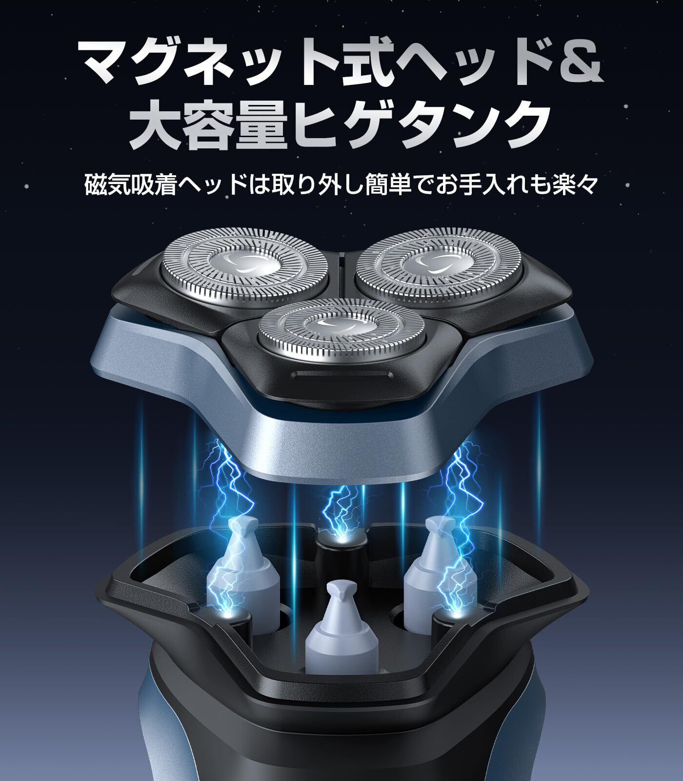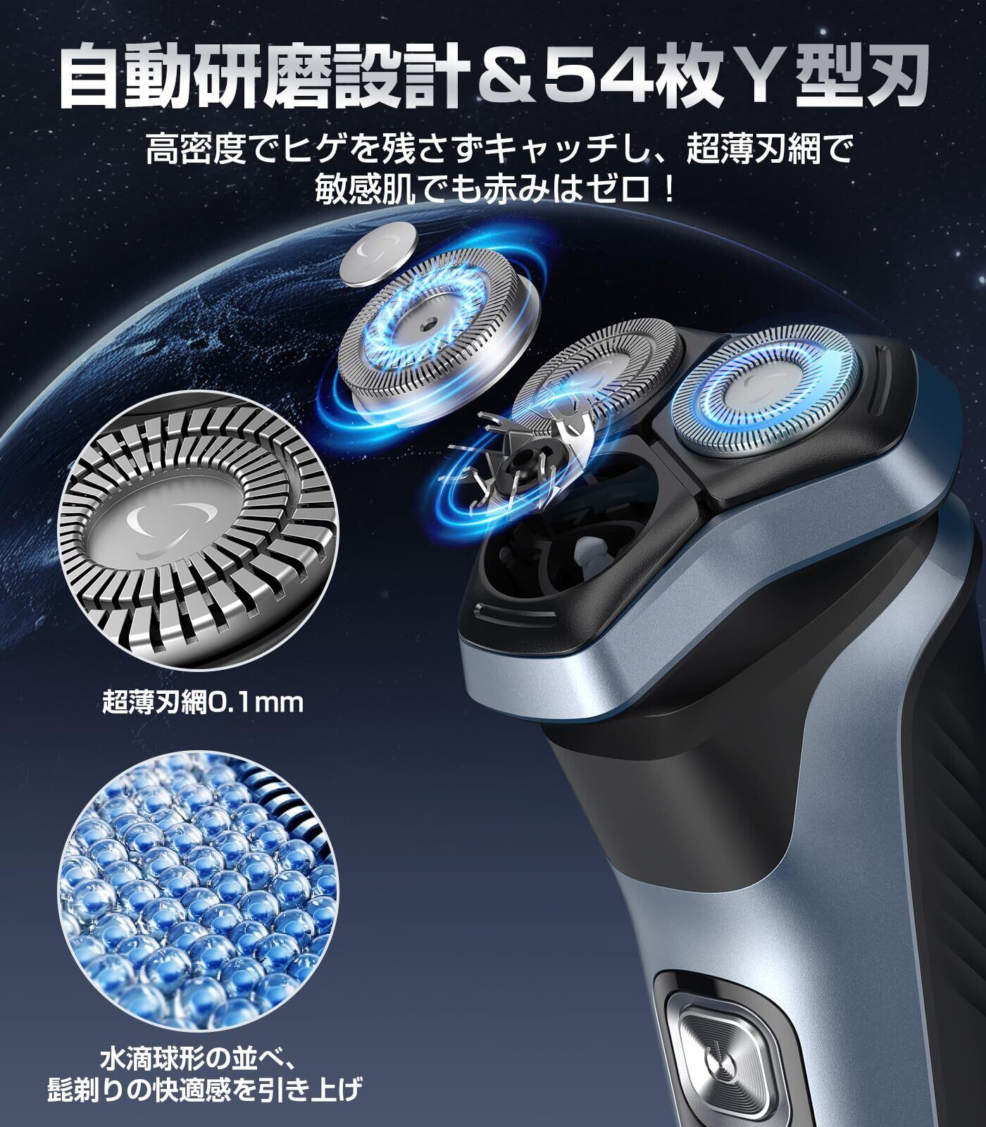 ひげそり 電動シェーバー メンズ 3D磁気式浮動ヘッド 54枚刃 深剃り 電気シェーバー (回転式·お風呂剃り·丸洗い可)自動研磨システム 乾湿両用 ヒゲトリマー付き IPX7防水 急速充電 360分連続使用 持ち運び便利 出張 旅行 父の日ギフト