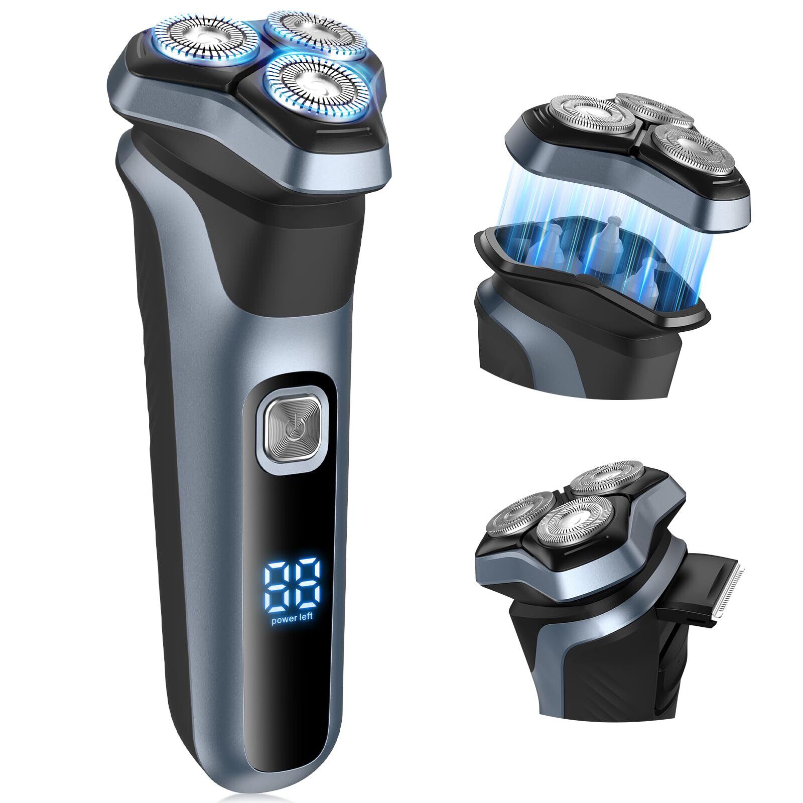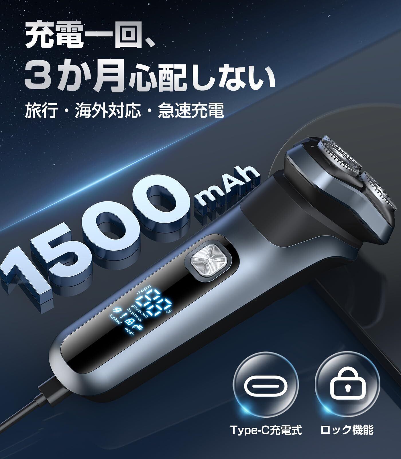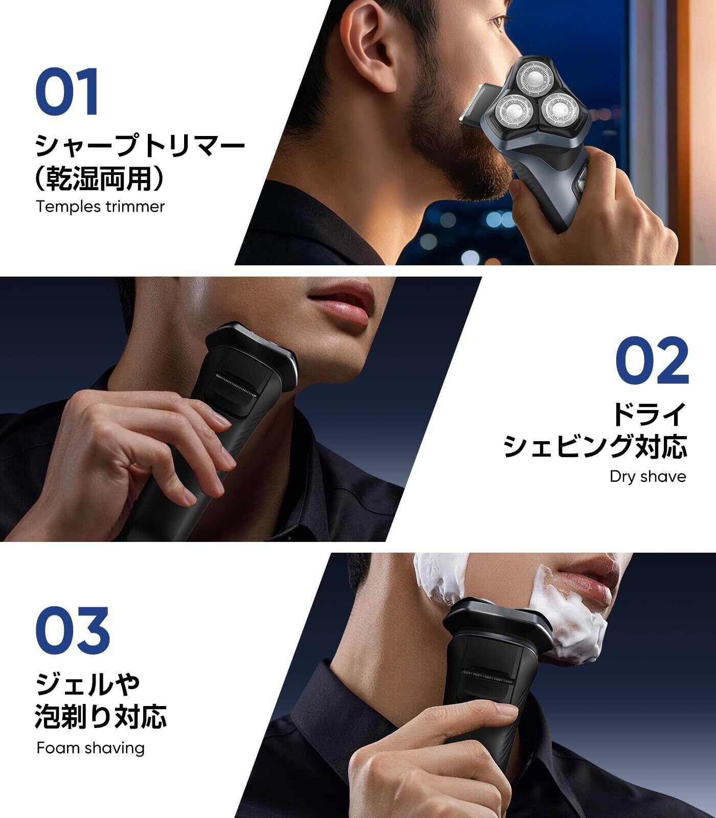 ひげそり 電動シェーバー メンズ 3D磁気式浮動ヘッド 54枚刃 深剃り 電気シェーバー (回転式·お風呂剃り·丸洗い可)自動研磨システム 乾湿両用 ヒゲトリマー付き IPX7防水 急速充電 360分連続使用 持ち運び便利 出張 旅行 父の日ギフト