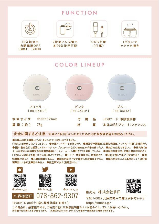 1日3分。気分上がる温感かっさケア。カッサ+温感+EMS+振動+LEDの多機能電動美顔器(充電式)。力を入れずにリンパの流れに沿ってかっさ部分をすべらせる事で顔周りに温感がめぐり、 フェイスラインやボディまで、お肌の「引き締まり感」を実感頂けます(効果には個人差があります)。