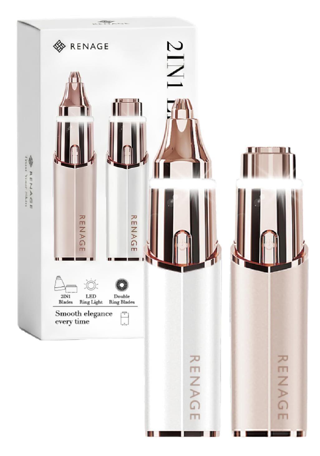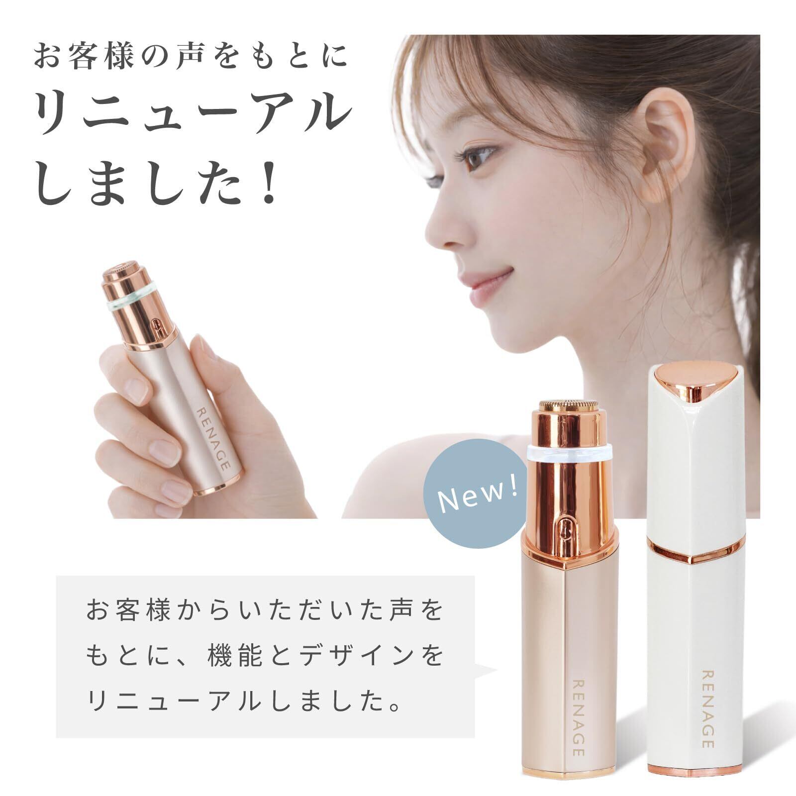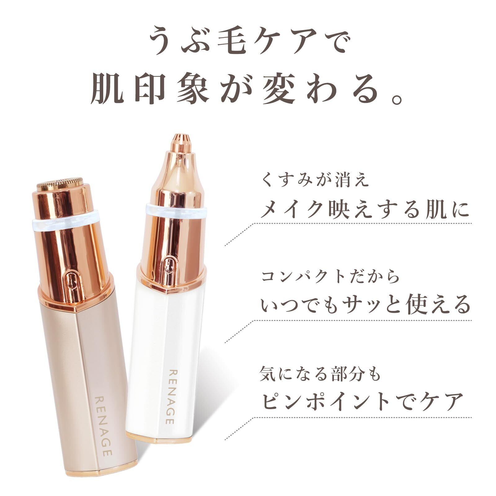 フェイスシェーバー レディース かおそり 電動 顔剃り うぶげそり 産毛 眉毛 うぶ毛 女性 顔 指 RENAGE 腕 LEDライト付 防水 水洗い 9300rpm 軽量 コンパクト スティックタイプ 無痛 回転式 2in1 RENAGE 日本語説明書付き 男女兼用 (電池式・ローズゴールド)