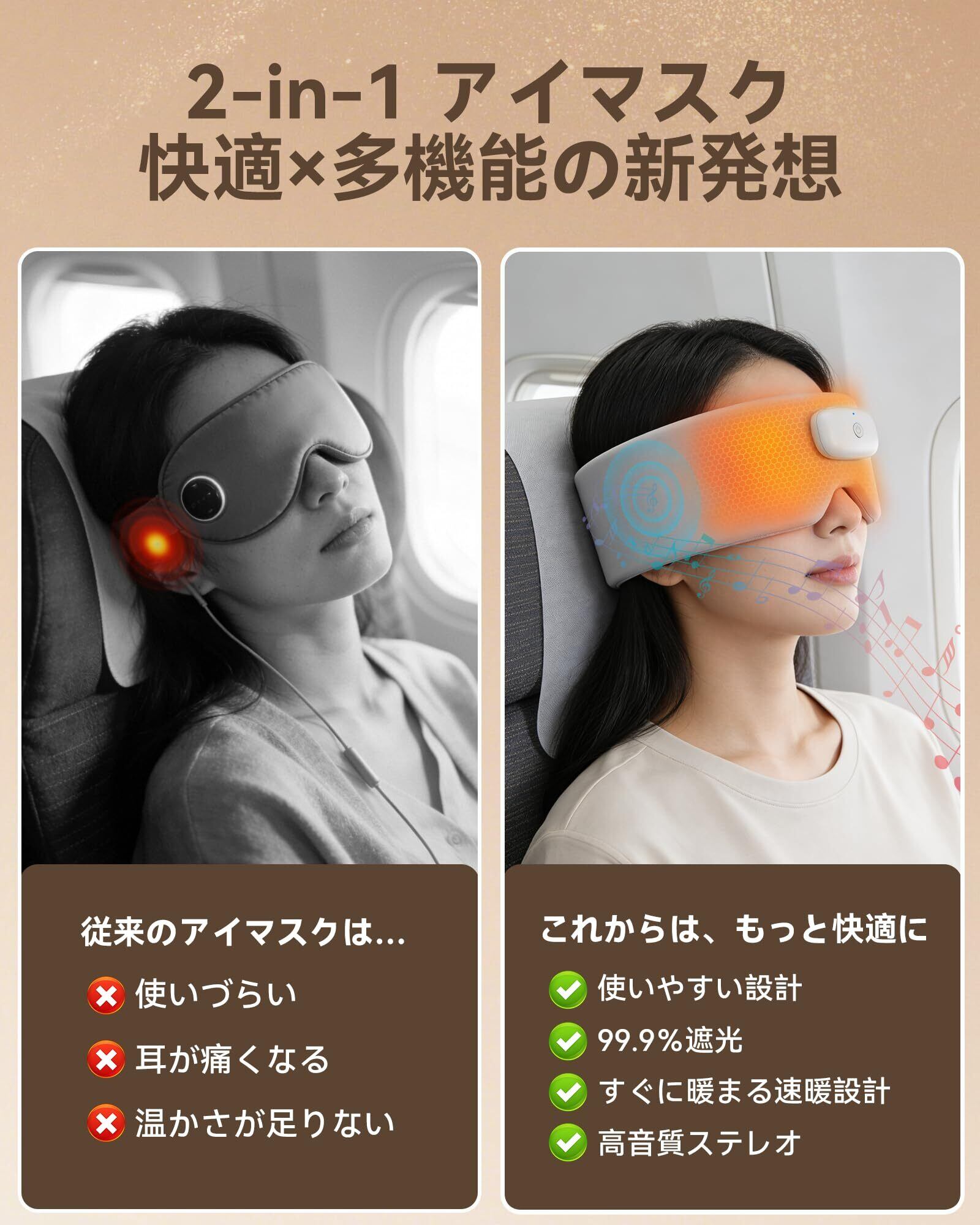 ホットアイマスク 充電式 アイマスク 睡眠用 遮光率99.99% 快眠グッズ リラックス 軽量 男女兼用 洗濯可能 遮音 飛行機・出張・プレゼントに最適