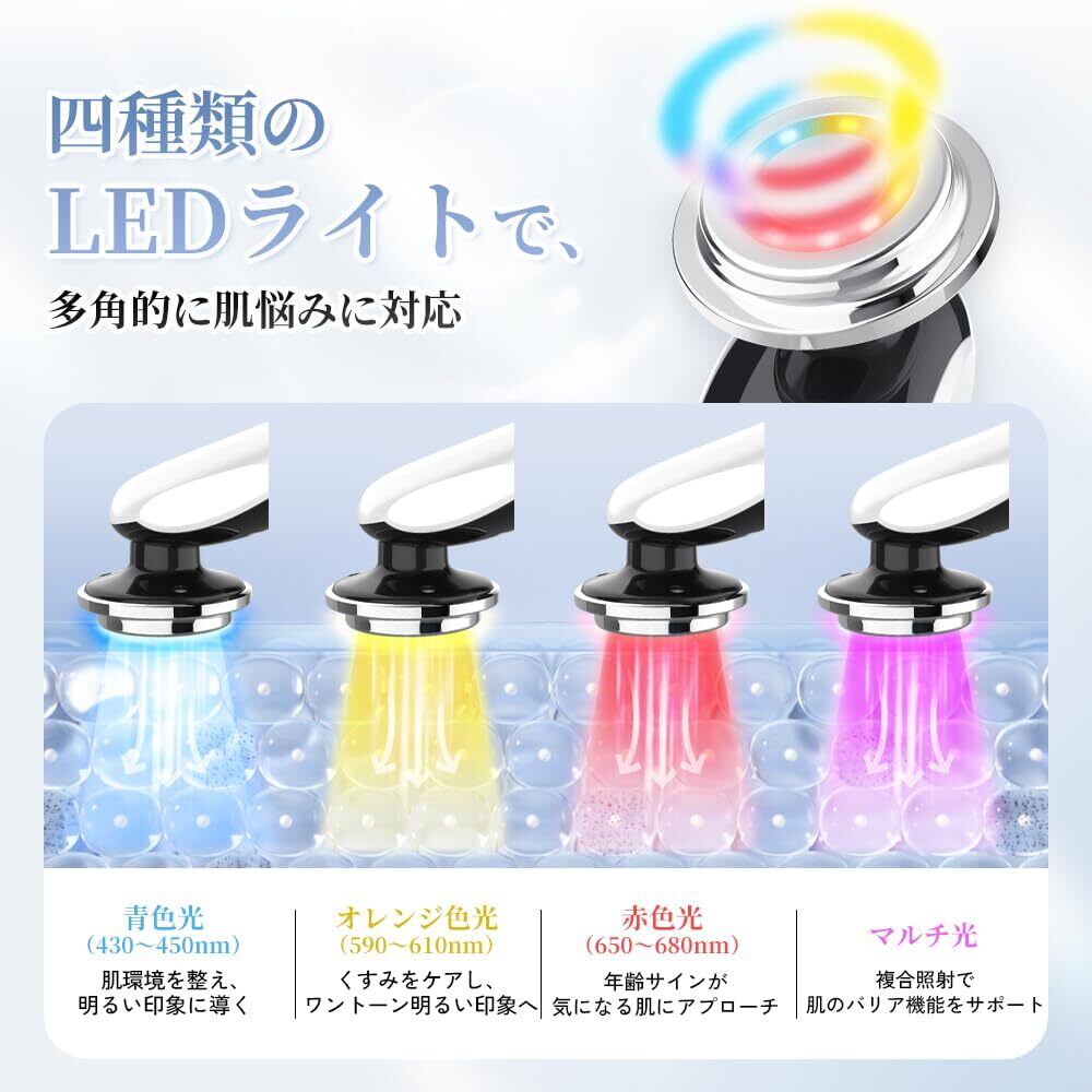 美顔器 EMS RF美顔器 目元 温熱 振動 イオン導入 イオン導出 毛穴 小顔 微電流 多機能美容器 自宅エステ 4色光エステ 自宅用 口元 1台7役 USB充電式 男女兼用