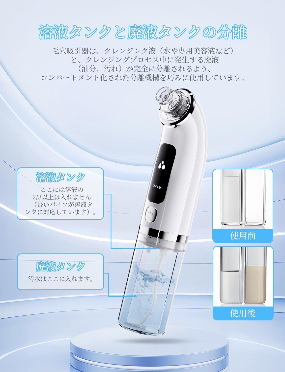 毛穴吸引器 6種類吸引ヘッド 4段階吸引力水流式 USB充電式 毛穴吸引 毛穴洗浄器 美容家電 LEDディスプレ 軽量で便利 男女兼用 日本語取扱説明書