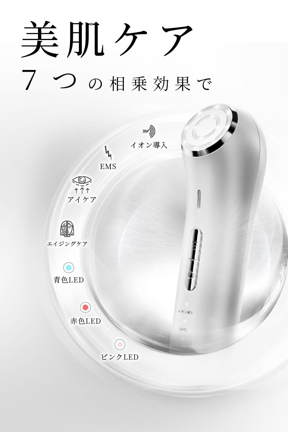 美顔器 美容器 目元ケア RF美顔器 イオン導入 ボディケア 温熱ケア 3色LED 光エステ 4モード 3段階レベル 超音波振動 毛穴ケア 自宅用 時短美容 美容家電 持ち運び便利 USB充電式 男女兼用 誕生日プレゼント 日本語取扱説明書 ギフト ホワイト
