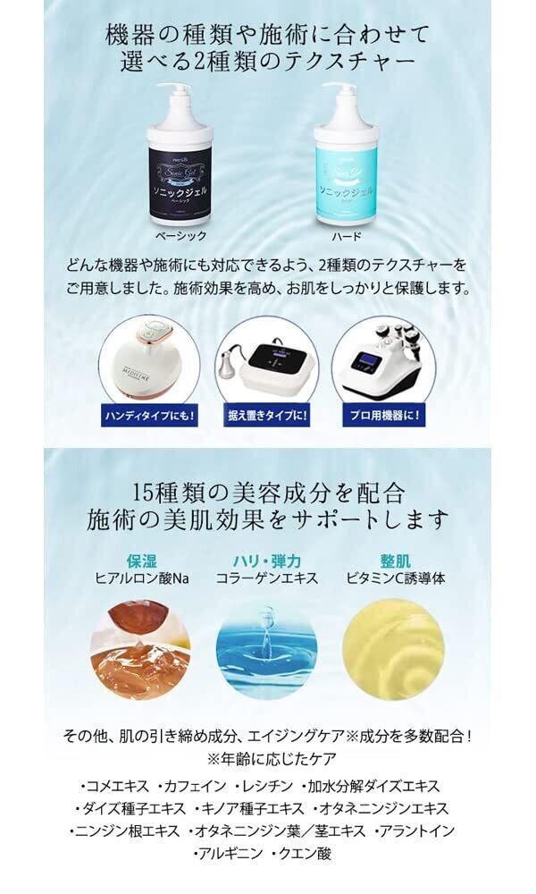【商品説明】最も重要なプローブの滑りはもちろん、たくさんの美容成分をギュっと集めて配合した超音波美顔器専用ジェルです。引締め成分と弾力肌に導く成分を配合し、超音波ケアとの相乗効果で潤いながらピーンと引き上がったお肌に導きます。キャビテーション、EMSにもご使用できます。