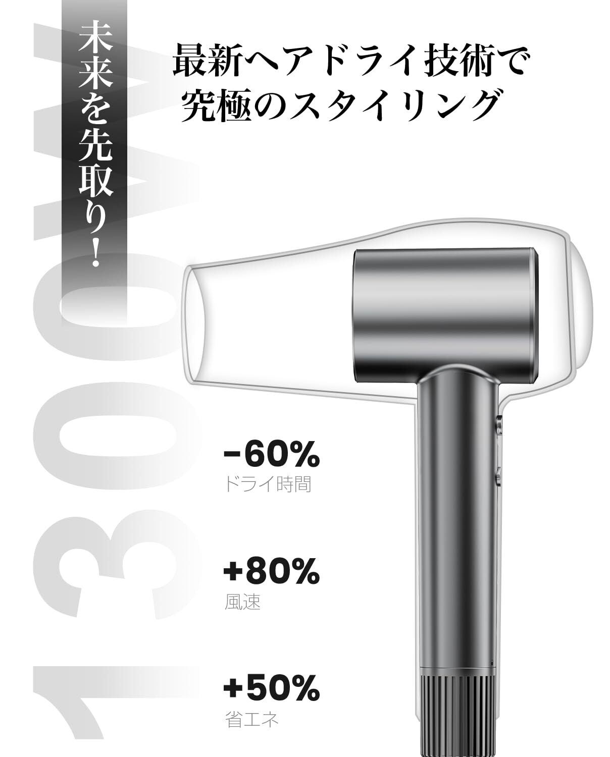【プロも認める超高速モーターで、ドライ時間を最大60%短縮】BGBの速乾ドライヤーは最新の高速デジタルモーターを搭載し、従来のヘアドライヤーを凌ぐ風量を実現!髪を素早く乾かすだけでなく、スタイリング時間も大幅に短縮。忙しい朝や急いでいる時にも、プロのような仕上がりを簡単に実現できます。