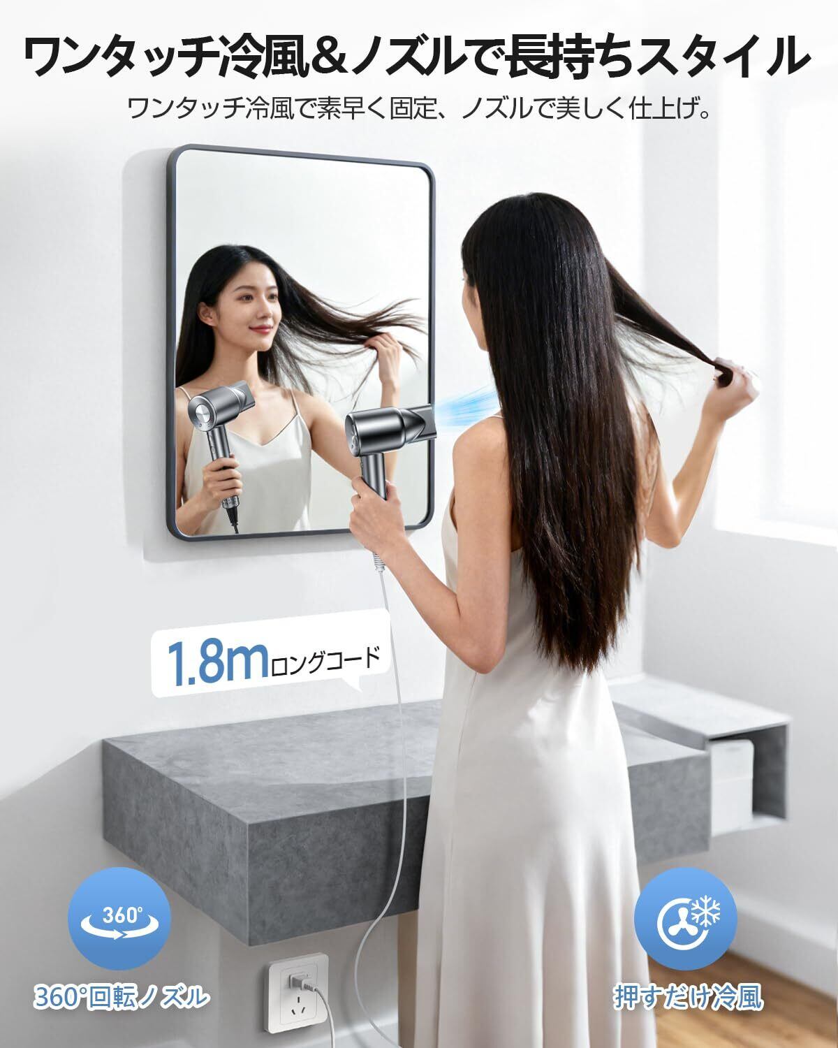 【ワンタッチ冷風&マグネットノズルでサロン仕上げ】スタイリングの仕上げに欠かせない冷風は、ワンタッチで瞬時に切り替え可能。指を離すと元の温度に自動で戻る便利な設計です。蒸し暑い日のクールダウンや寝癖直しにも便利で、幅広い用途に対応。さらに、付属のマグネットノズルが風を一点集中させ、前髪・毛先・クセ毛のセットもスムーズに。風の流れを的確にコントロールし、まとまりのある美しいスタイルを短時間で実現。プロのサロンでも採用される機能を、毎日のご自宅で体験してください。ノズルはマグネット式で着脱が一瞬、忙しい朝でも素早くスタイリング。自宅でプロのようなまとまりのあるスタイルを手軽に再現できます。