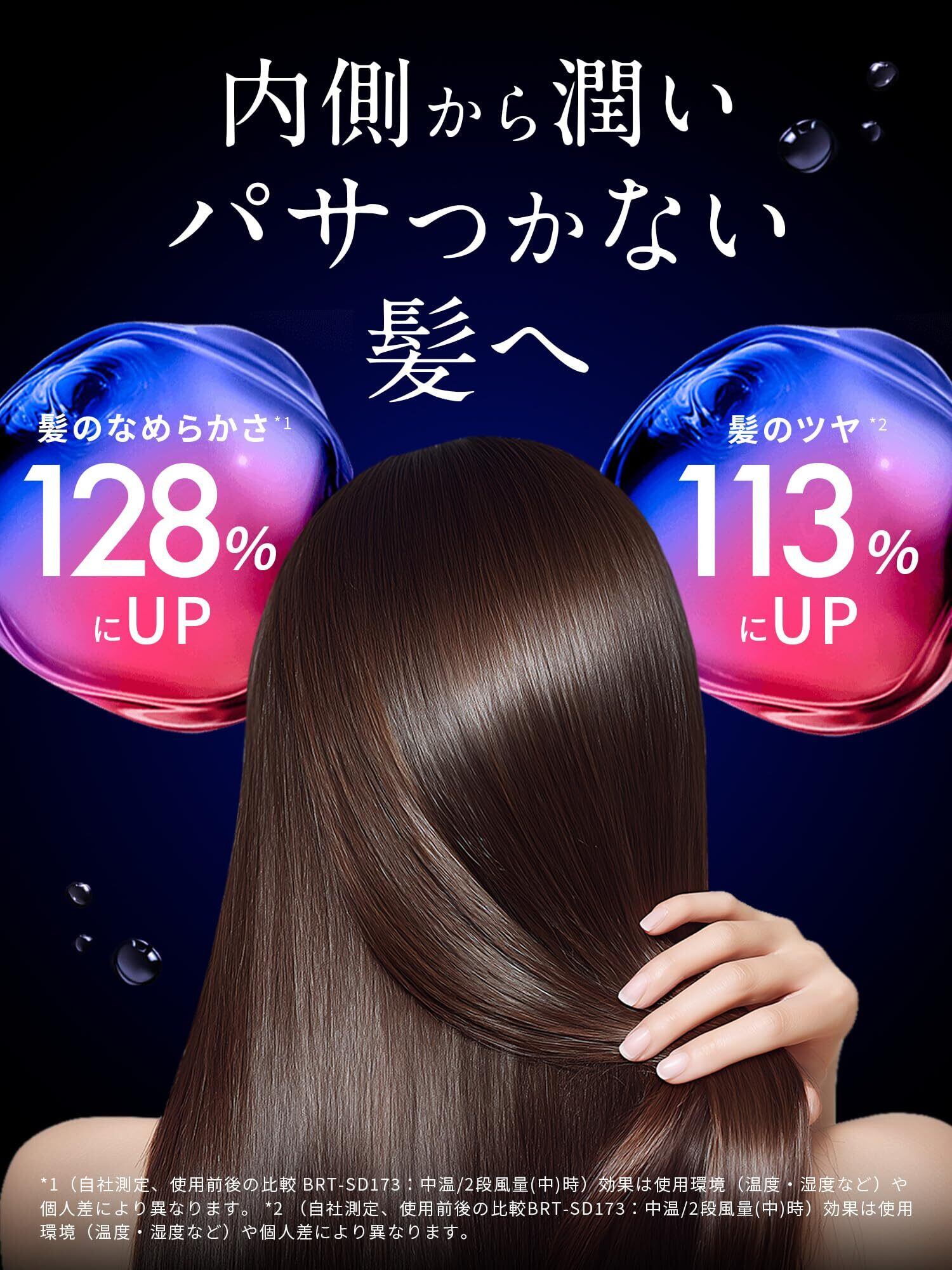 使用中は髪の毛から10cm以上離してください。髪の毛が吸い込まれ、切れたり、やけど、故障の原因となります。