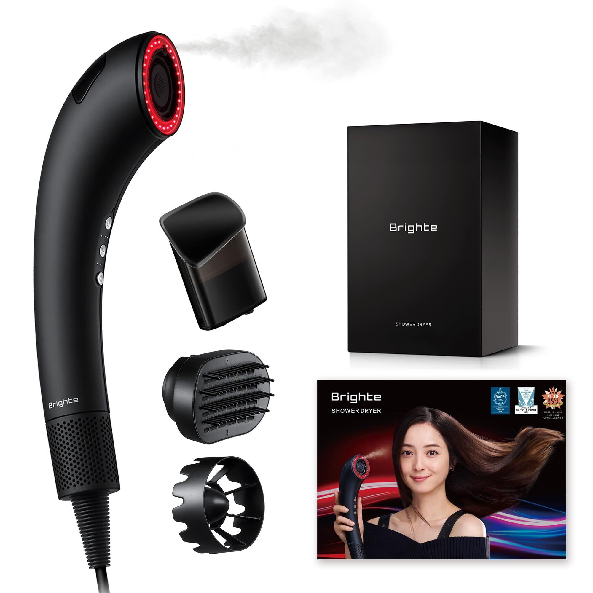 Brighte ブライト SHOWER DRYER シャワードライヤー 大風量 速乾 ナノミスト搭載 軽量 ヘアドライヤー