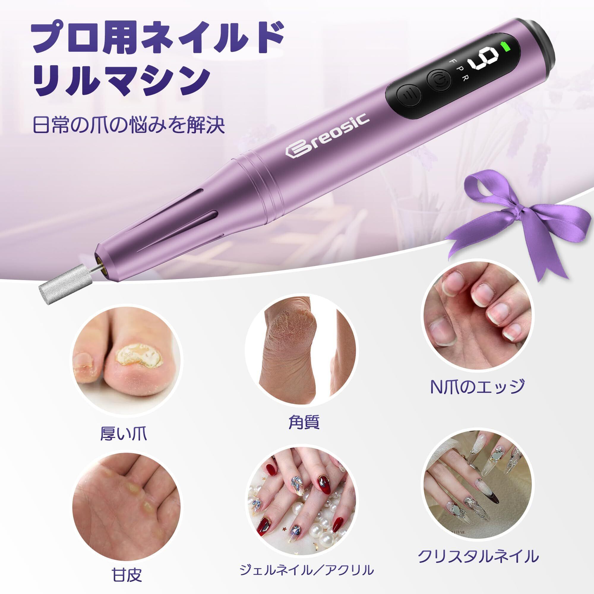 【12合1ネイルマシンセット】Breosicワイヤレスネイルマシンには各種のプロのネイルヘッドが含まれています:6点セットのネイルヘッド、5点研磨セット、1個のセラミックヘッドセットと31個の爪やすり研磨ヘッド。このワイヤレスネイルケアセットは、クリスタルネイル、人工ネイル、厚みのあるネイル、ジェルネイルオイルの研磨、整形、除去のすべてのニーズを満たします。