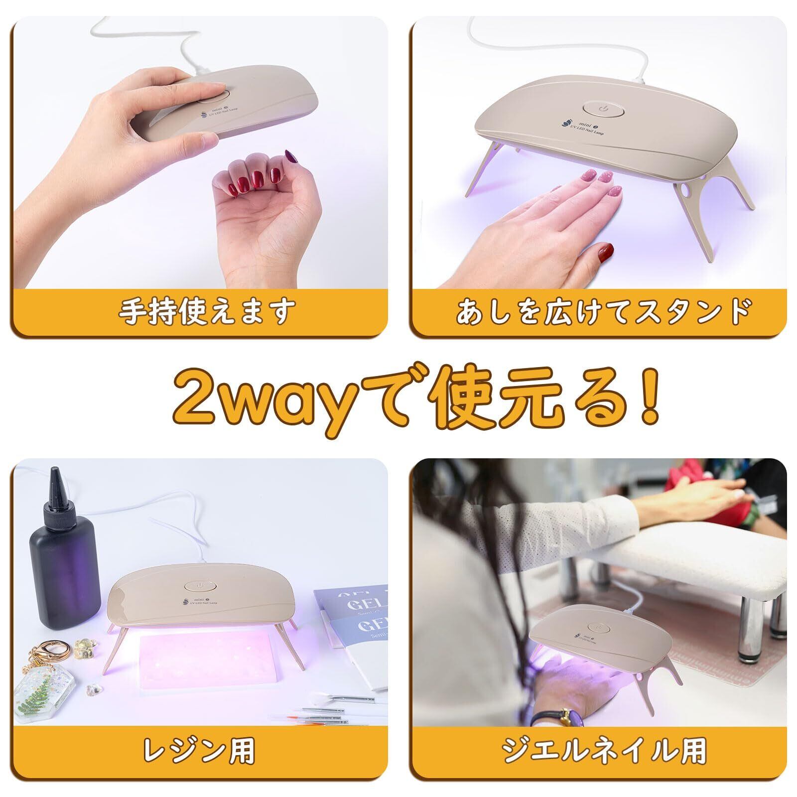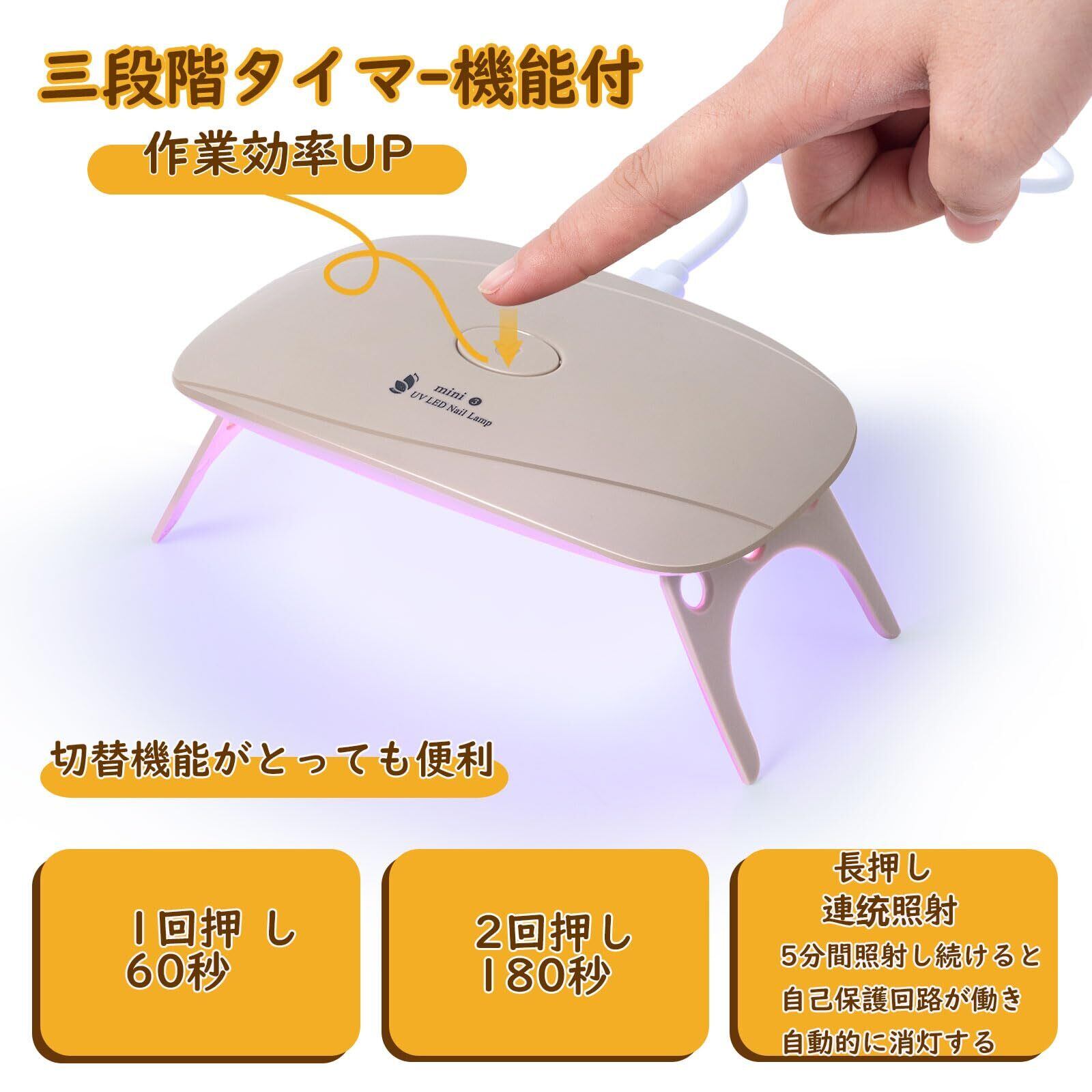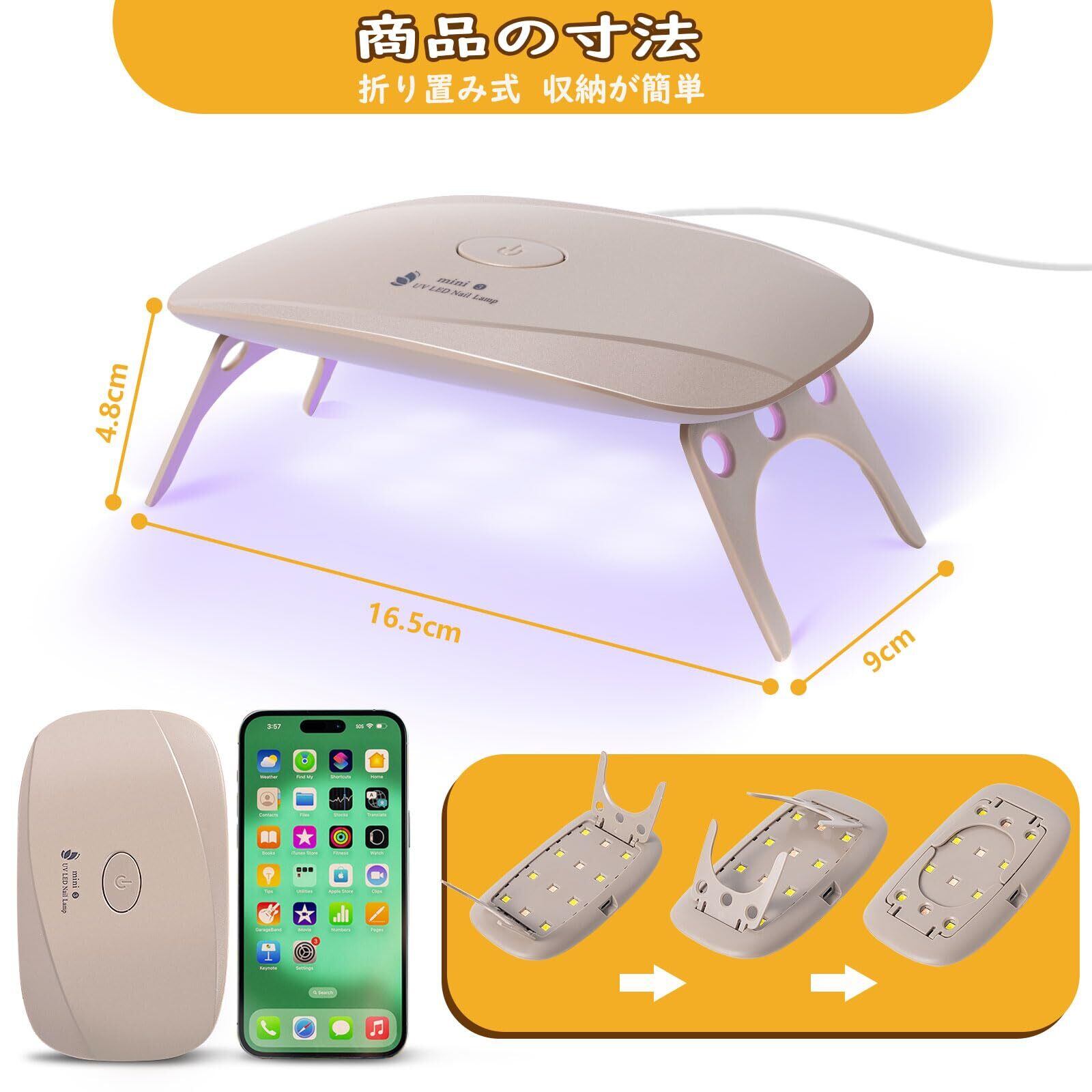 UVライト レジン用 ジェルネイル ライト LED 硬化ライト ネイルドライヤー 赤青二色光源 折りたたみ タイマー設定可 新しい (ベージュ)