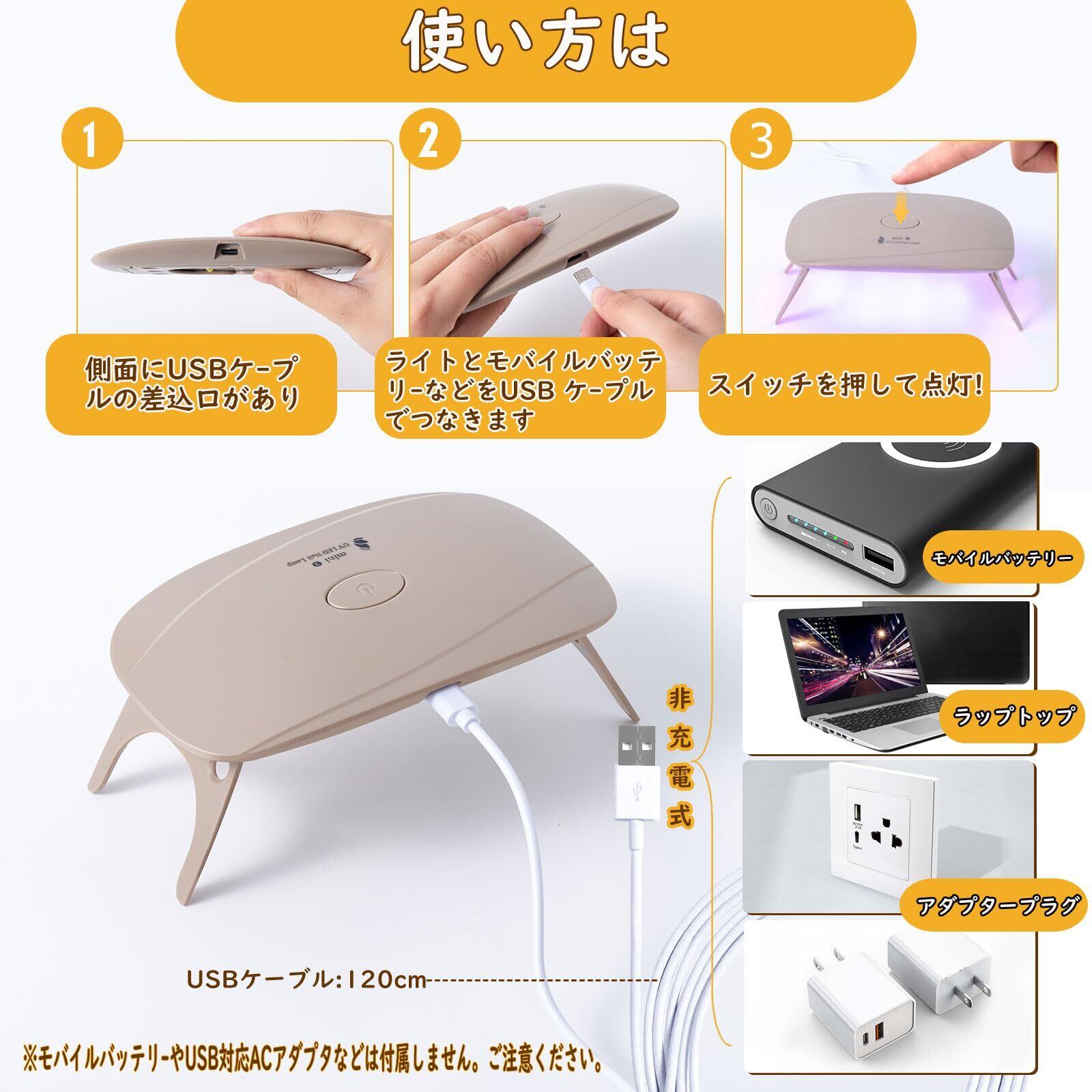 ※電源は、別途モバイルバッテリーまたはUSB電源アダプタをご用意ください。※本製品は充電式ではありません。