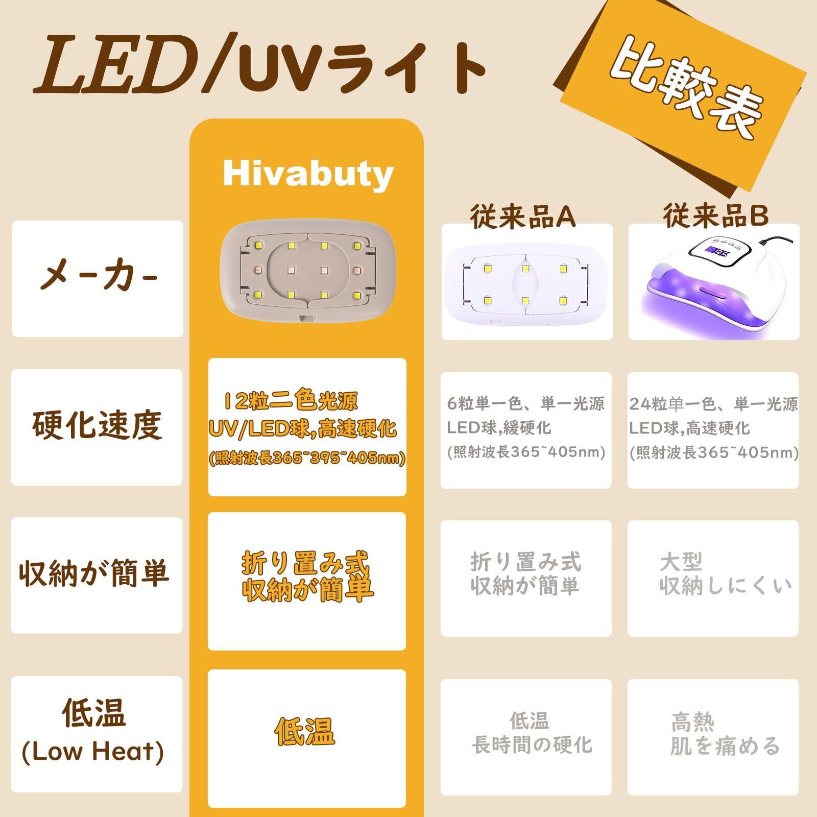 【高速硬化, 低温(Low Heat)】 12粒二重色、二重光源UV/LED球,高速硬化(照射波長365~395~405nm)。12W省電力、 低熱、手肌に優しい,子供にも優しい