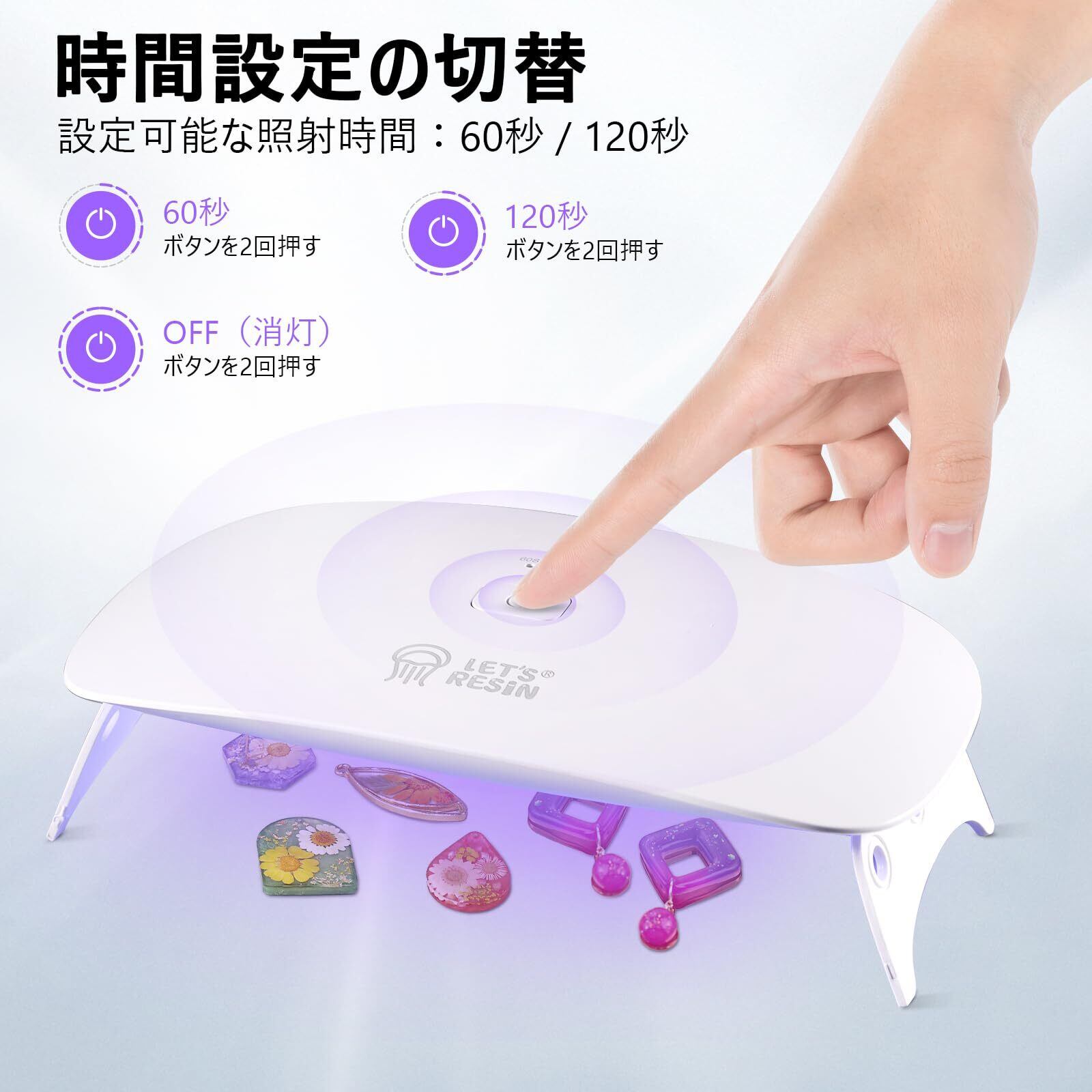 LET'S RESIN UVライト レジン用 硬化ライト ネイルライト 手足兼用 大サイズで照射面積が広い 18個の二重光源LEDチップ 時間設定可能(1分、2分) DIYクラフト アクセサリーパーツ ネイル パーツ