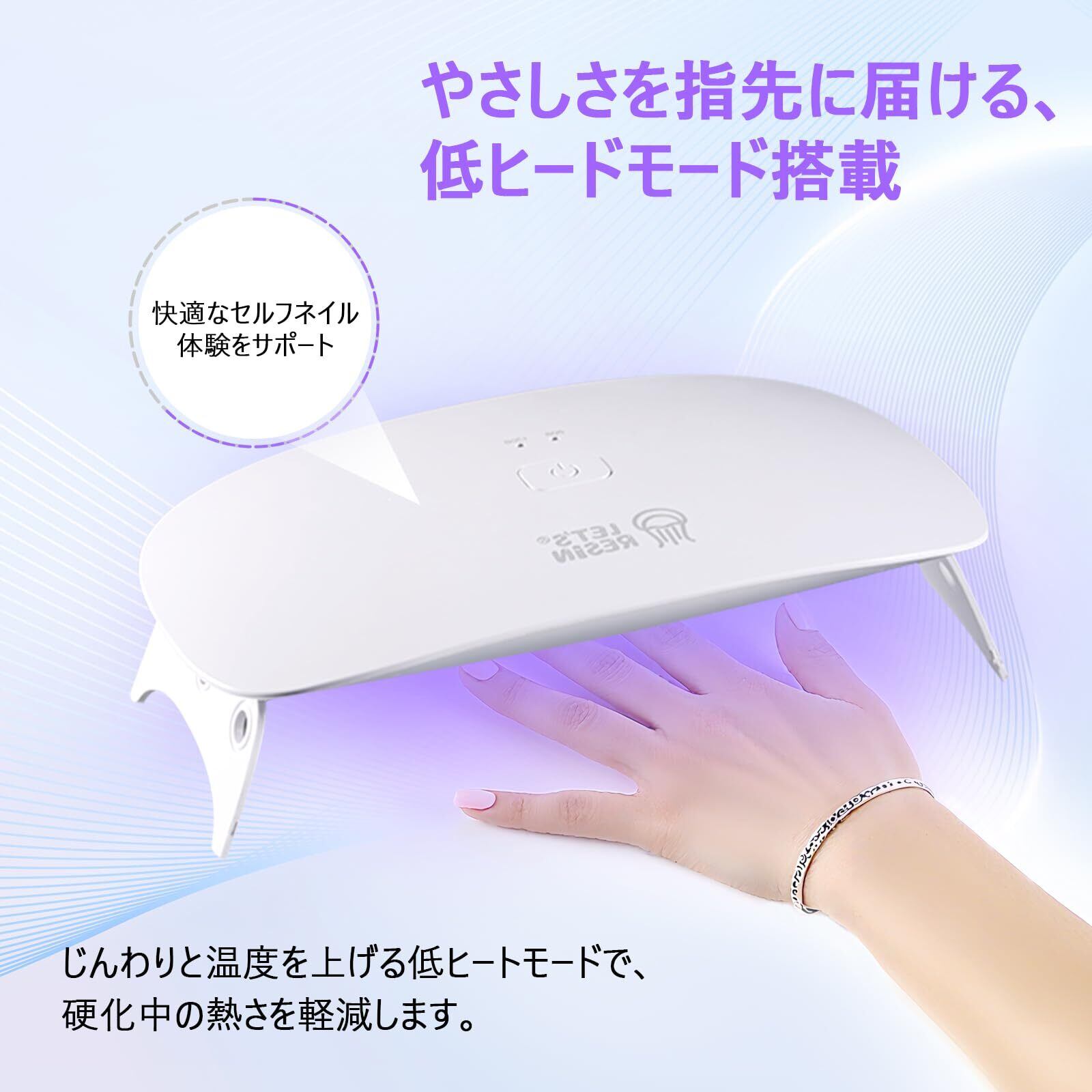 【プロ仕様のUVライト】LET'S RESINのUVライトは、18個の二重光源LEDチップを均等に配置し、他の小型UVランプと比べて強力な硬化効果を発揮します。より早く、より均一にレジンを硬化させることができ、プロフェッショナルな仕上がりが実現します。(本製品はU Vレジン液が付属していません。)