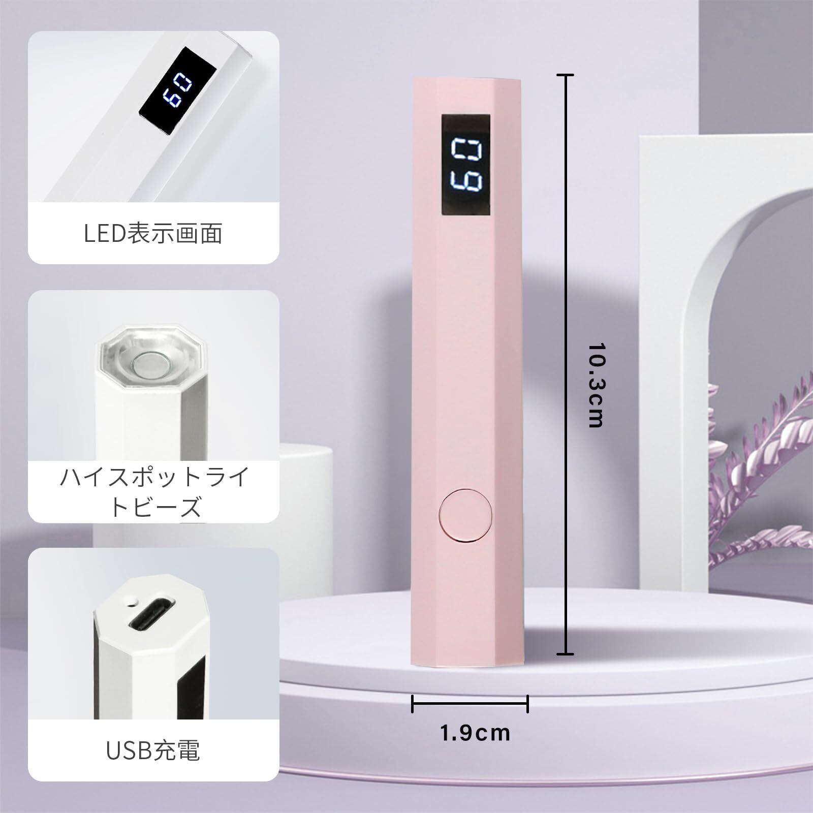 aninako ネイルライト ハンディ 充電式 LED & UV 硬化ライト ジェルネイル レジン トップコート 対応 セルフネイル 携帯 速乾 2階段タイマー (ピンク)