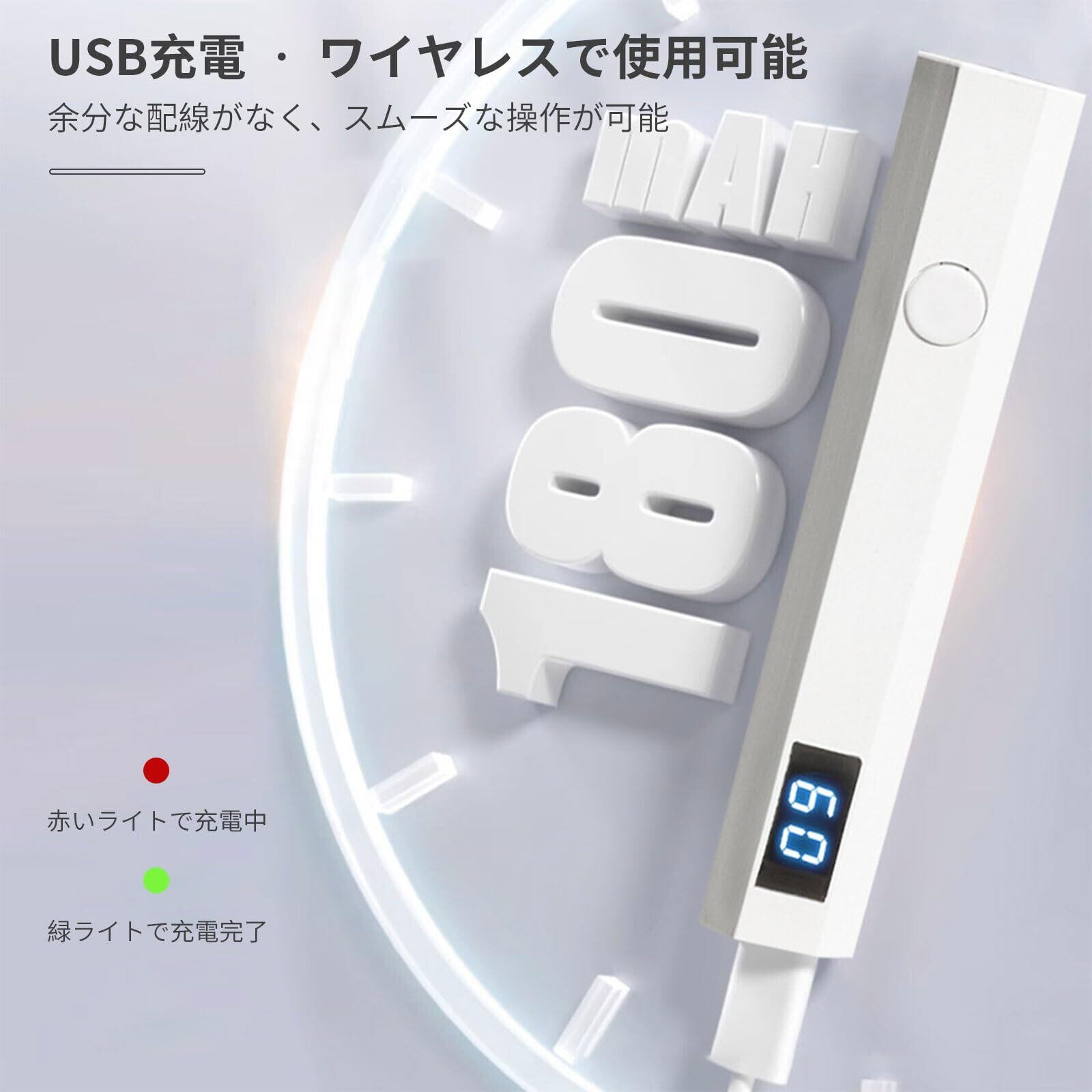 【商品仕様】サイズ:103mm×16mm×19mm、重量:20g、バッテリー容量:180mah、定格電力:3W。 パッケージ内容:ネイルライト×1、USB-C充電ケーブル×1。