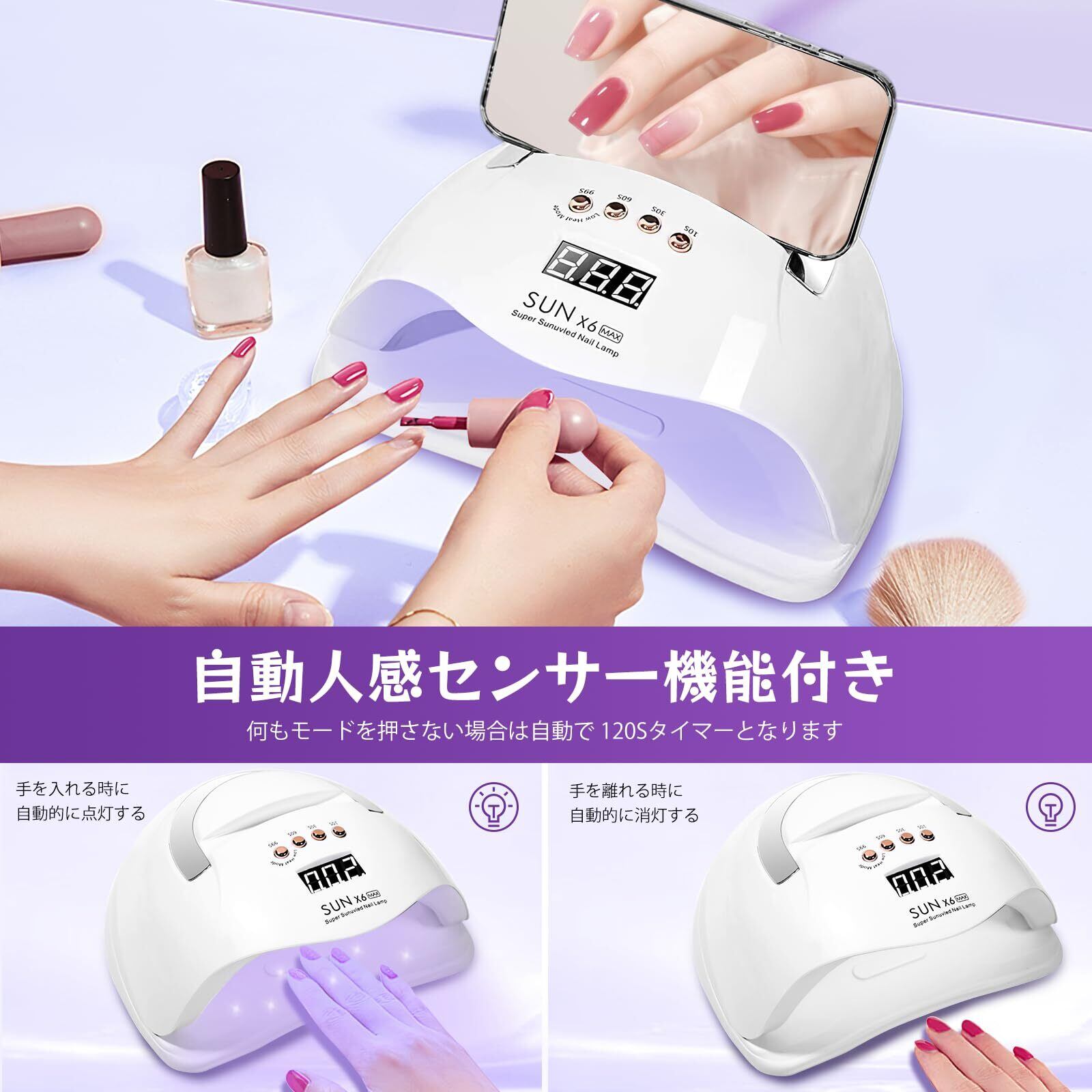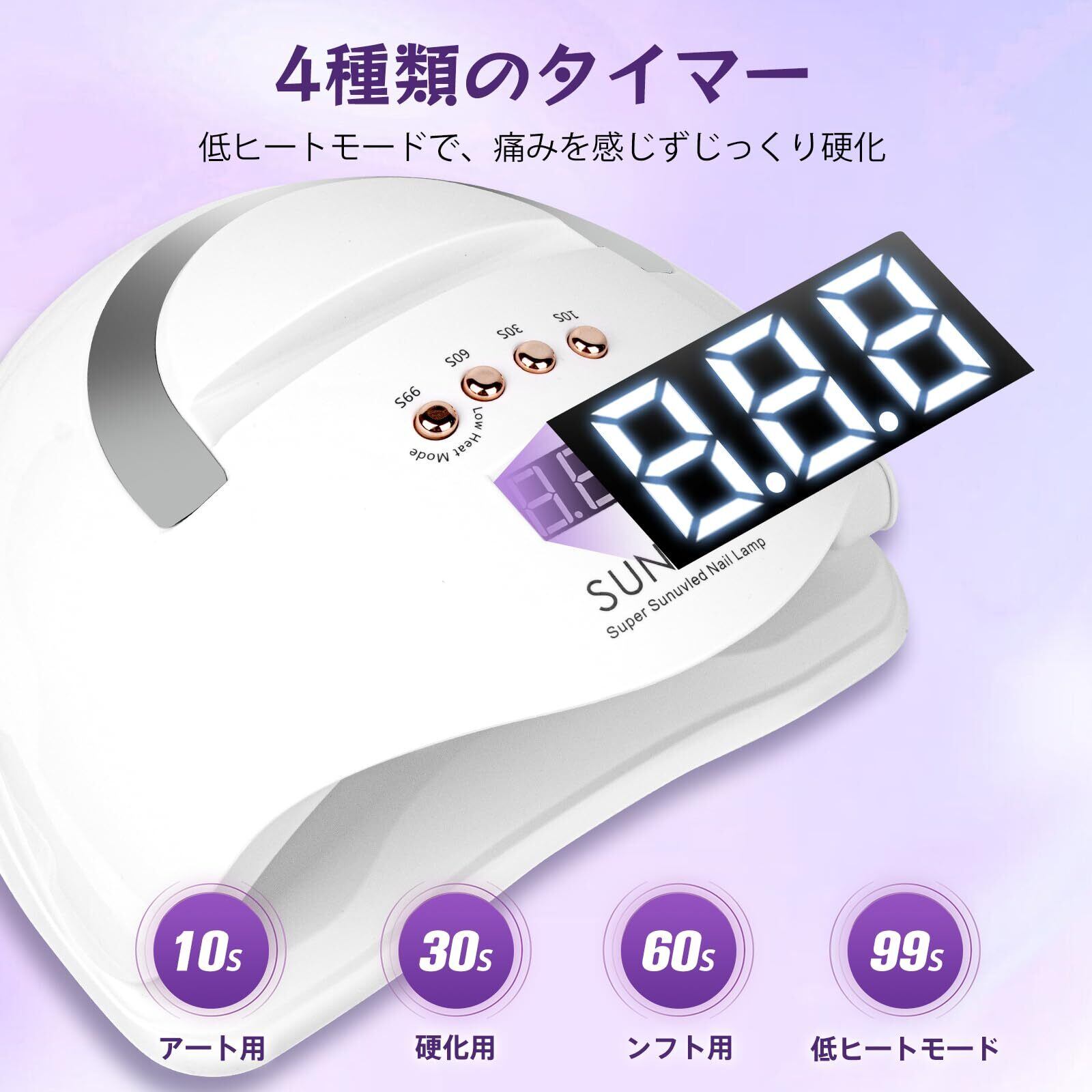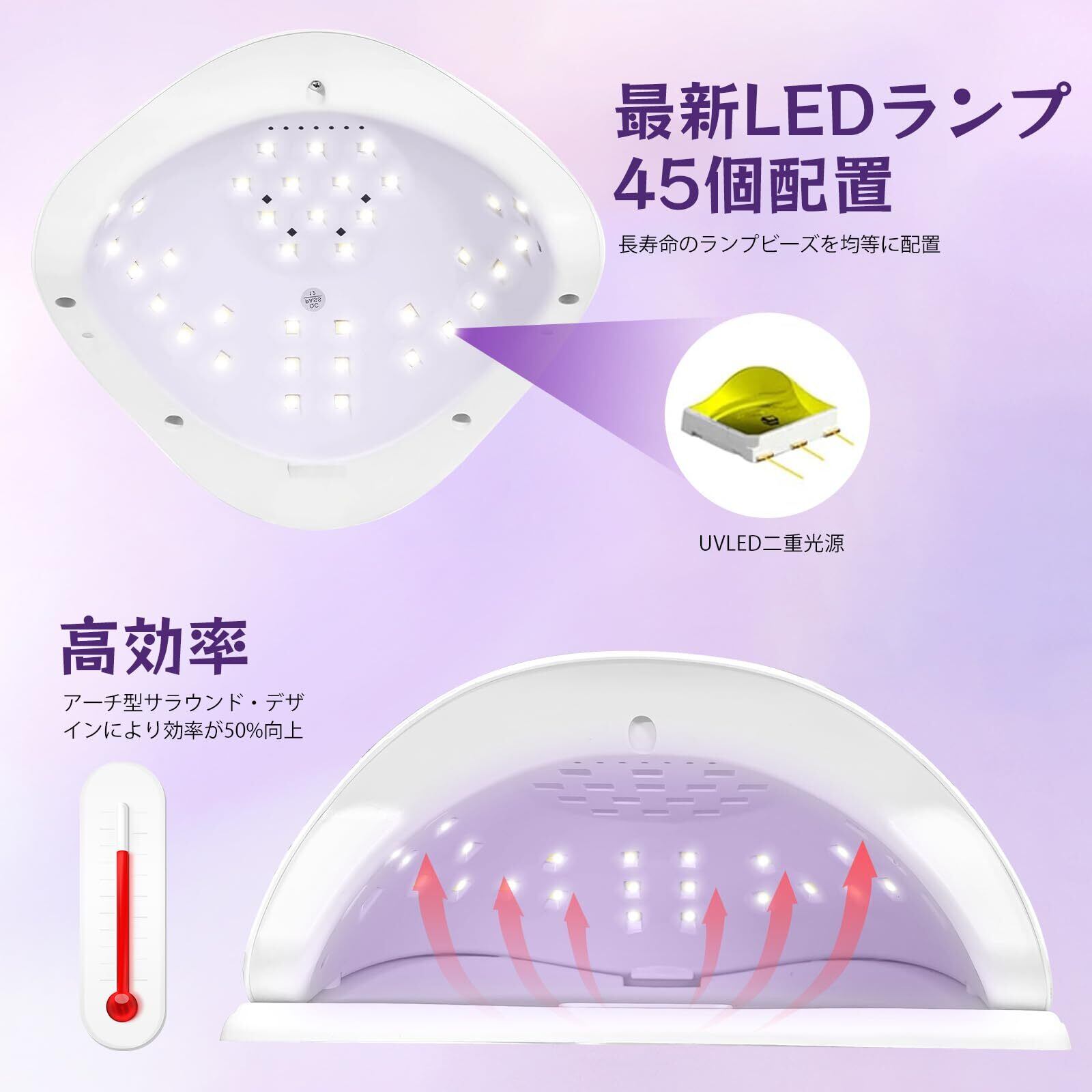 YAMOOCO ジェルネイル ライト 自動感知センサー LED+UV 45ホワイト 低ヒートモード ネイル専用ライト ジェル 硬化専用 ネイルライト 液晶モニター 全ジェル対応