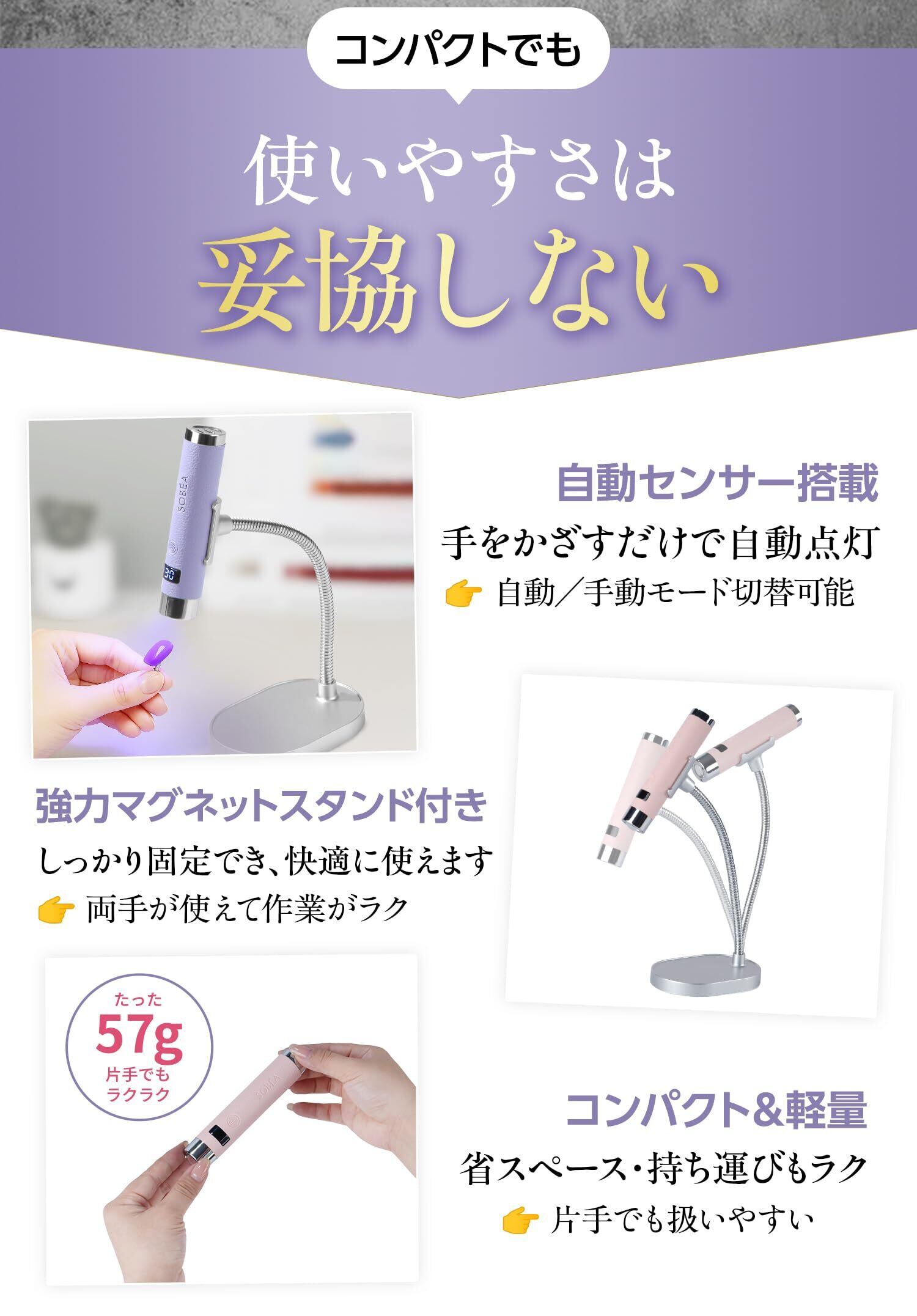 ジェルネイルライト UV LEDライト ネイルランプ オートセンサー搭載 強力マグネットスタンド 軽量 57g オート照射 USB充電式 30秒/60秒タイマー付き コンパクトタイプ ハンディライト セルフネイル レジン対応 (ラベンダー)