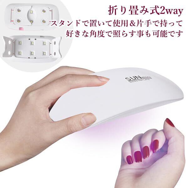 ネイル ライト ジェルネイル UVライト レジン硬化 LED UV ミニ コンパクト 薄型 軽量 パワフル 硬化 携帯 出張
