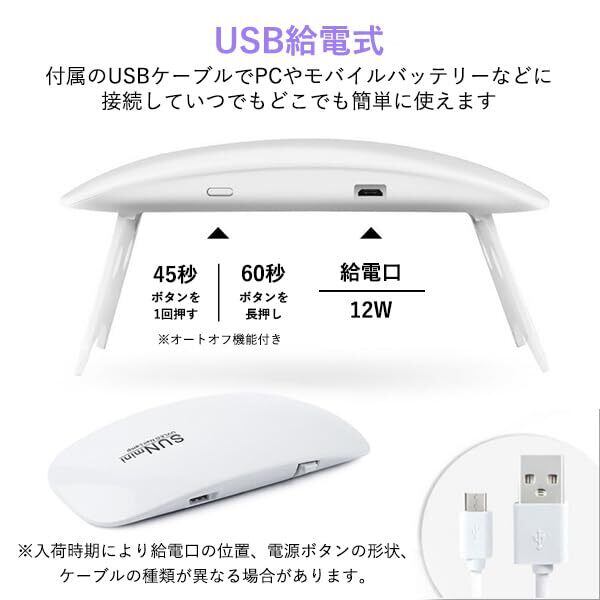 折り畳み式のスタンドだから、携帯・収納にとっても便利。 手に持って硬化させたい部分だけピンポイントに照射することもできます。 USBケーブルでパソコンやモバイルバッテリーまたは自動車用充電器などに接続して、 いつでもどこでも簡単に使えます。