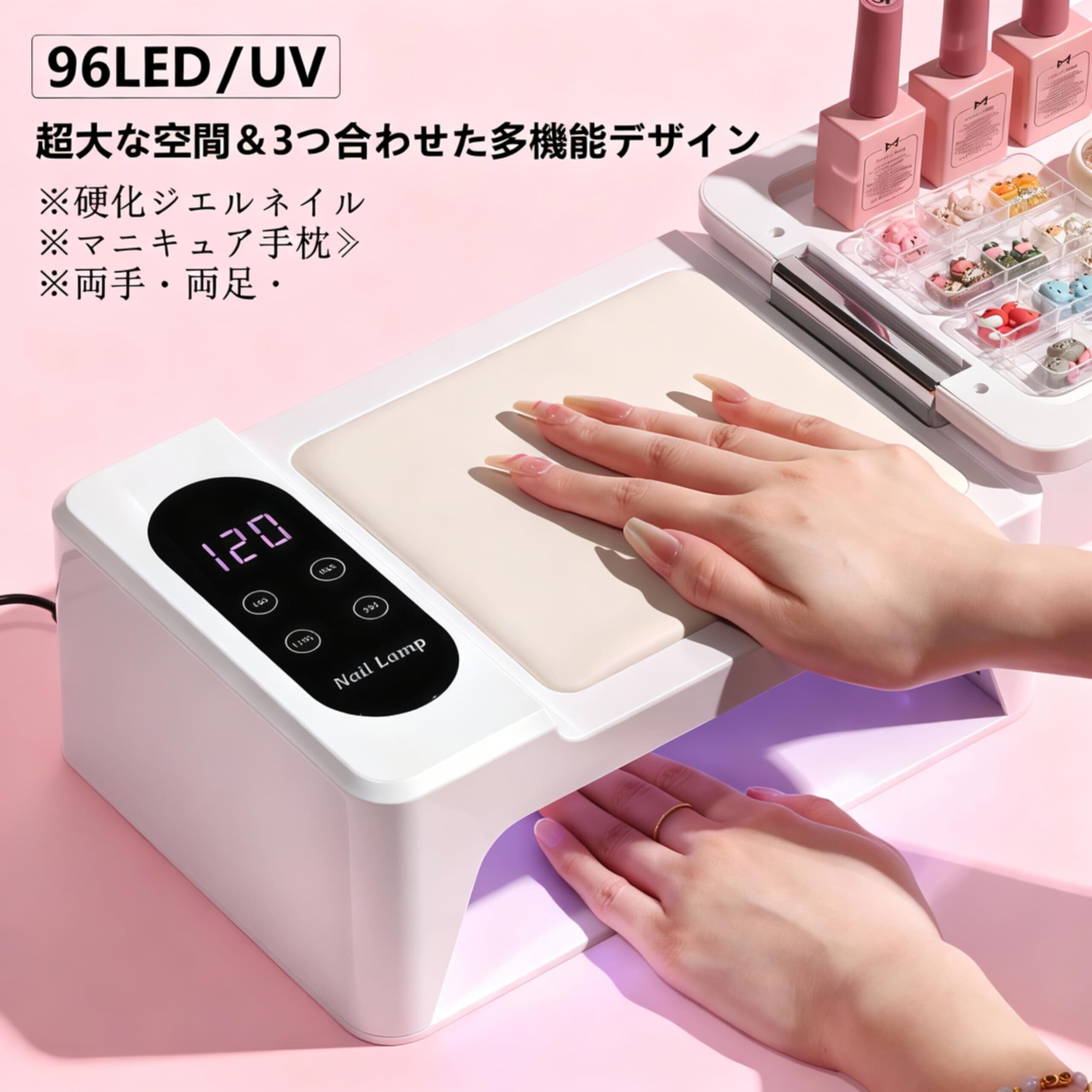 NUYOLEITY ネイルライト LED UVライト レジン用 全ジェル対応 390W硬化ライト PU手枕付き ジェルネイルライト 4階段タイマー 96LEDs 高速硬化 レジンライト 低ヒート 手足両用 マニキュア用 日本語説明書付き (ホワイト) (96LEDS 3IN1)