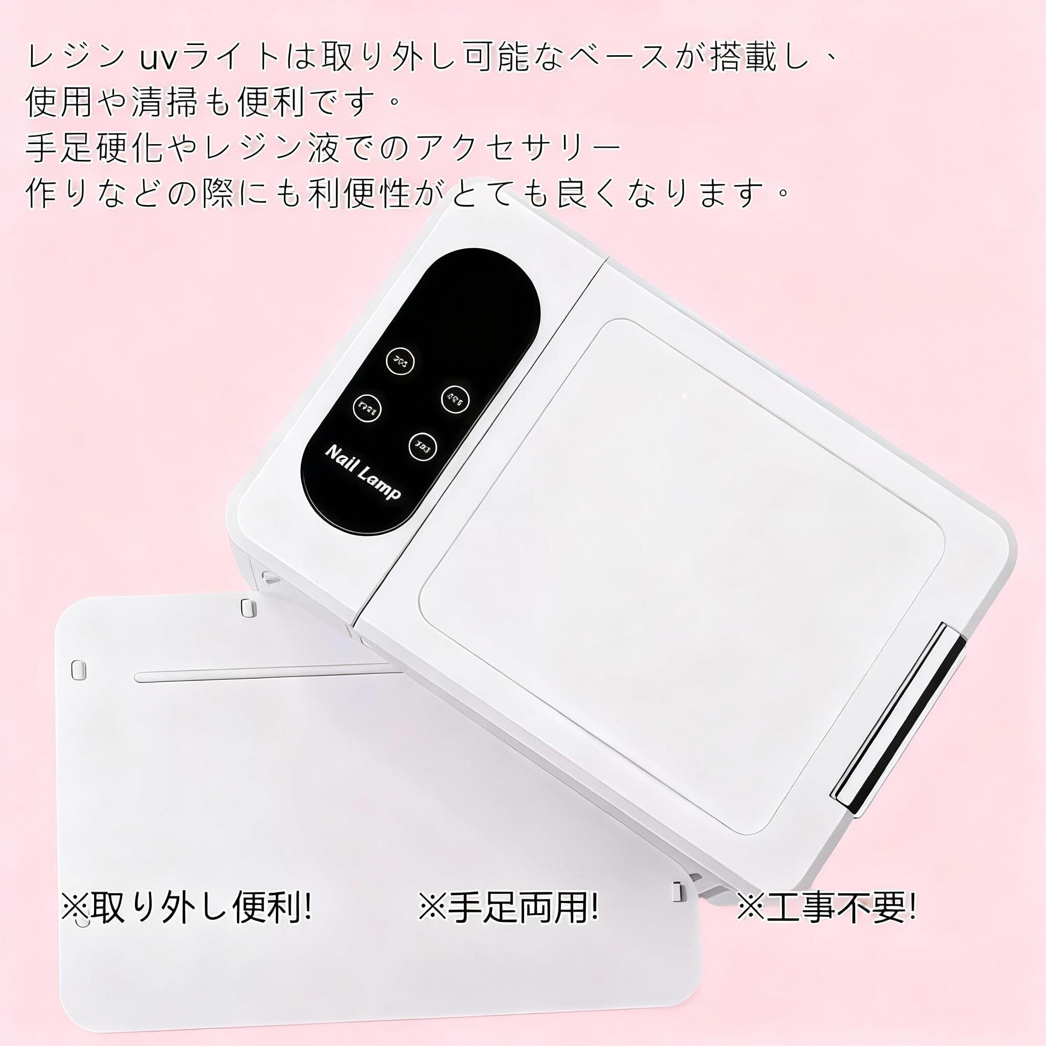 【取り外し可能ペース&全ジェル対応】レジン uvライトは取り外し可能なベースが搭載し、使用や清掃も便利です。手足硬化やレジン液でのアクセサリー作りなどの際にも利便性がとても良くなります。このled ジェルネイル ライトは、ベースジェル、トップジェル、カラージェル、ハードジェル、スカルプチュアジェル、ジュエルジェル、UVレジンなど、ほぼすべてのジェルタイプに適しています。ジェルネイルライトに不具合や問題がございましたら、お気軽にご連絡ください。間の満足のいく交換サービスをご提供いたします。当店自慢のアフターサービス、きちんとサポートさせて頂きます。