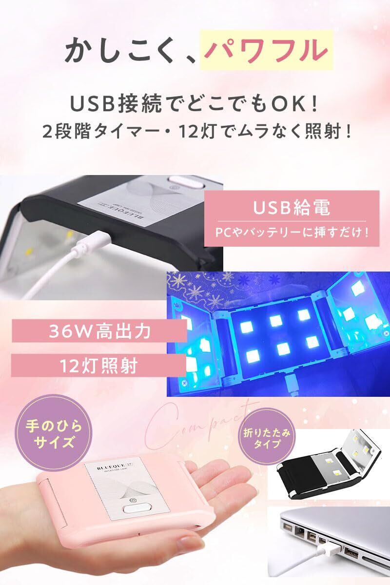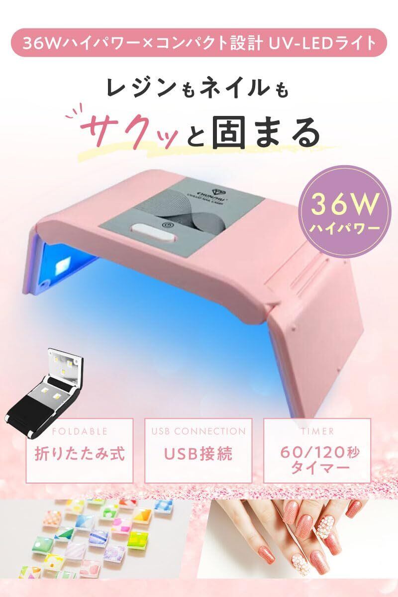 ネイルライト ネイルドライヤー UV LED 硬化 ジェルネイル レジン 36w 折りたたみ 持ち運び タイマー (ホワイト 給電式)