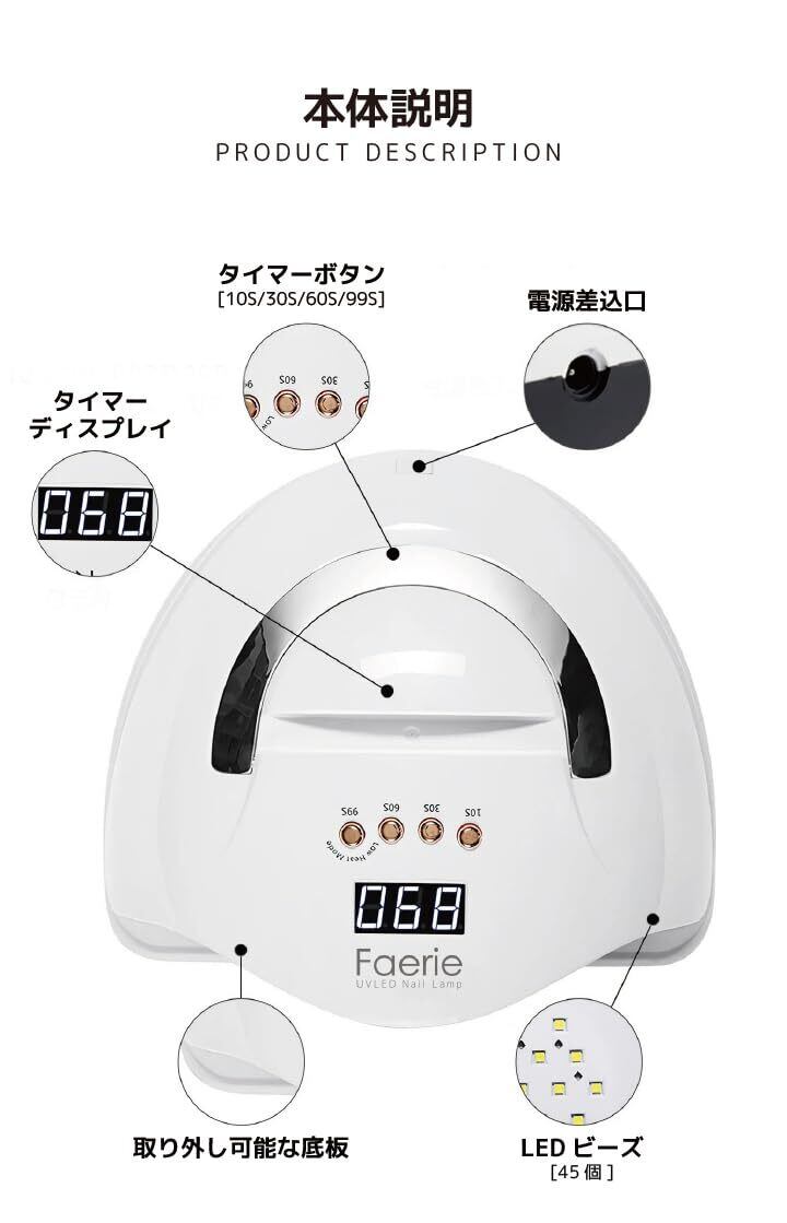 Faerie ジェルネイルライト ネイルライト UV/LED 45個led 優しいホワイトLEDライト採用 スマホスタンド 低ヒート機能 全ジェル対応 人感センサー付 ネイルドライヤー クラフトレジン 硬化用ライト レジンライト 日本語説明書付き& 12ヶ月付