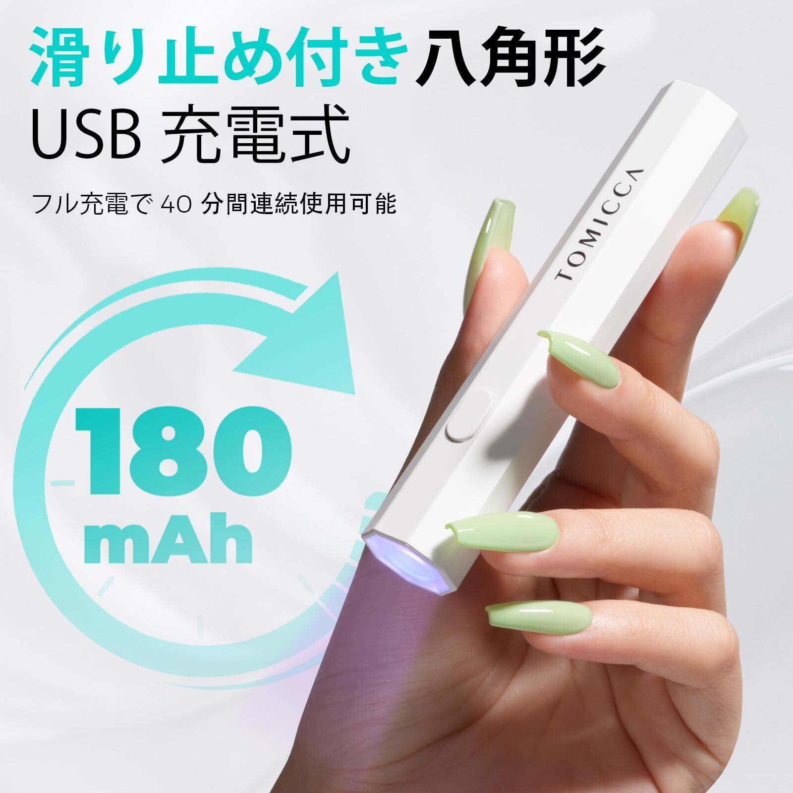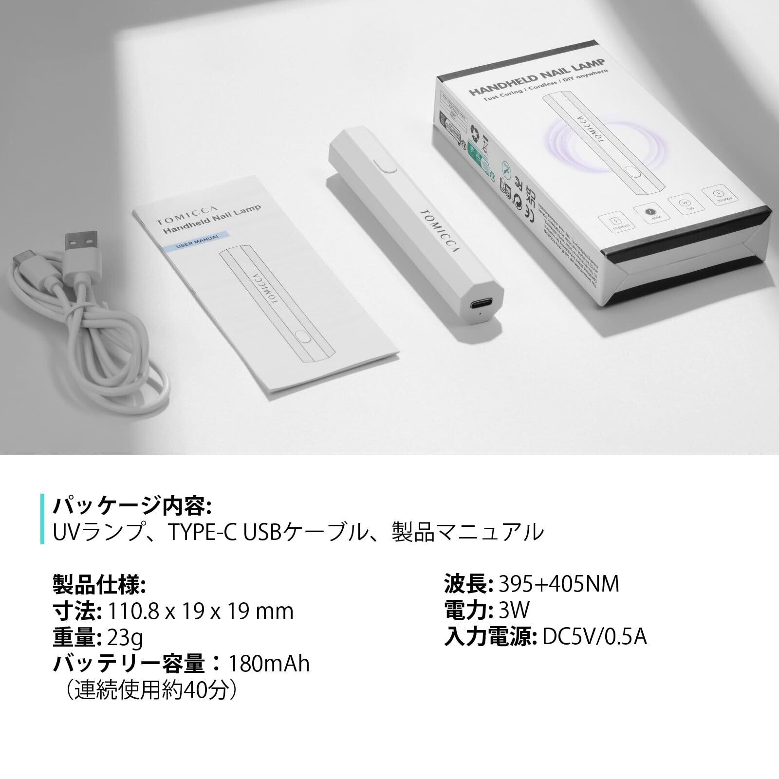 TOMICCA ネイルライトペン型 ミニネイルライト全てのジェルネイルアート対応 LED & UV 仮硬化 USB充電 手足両用 LEDライト 携帯用充電式 UVネイルライト