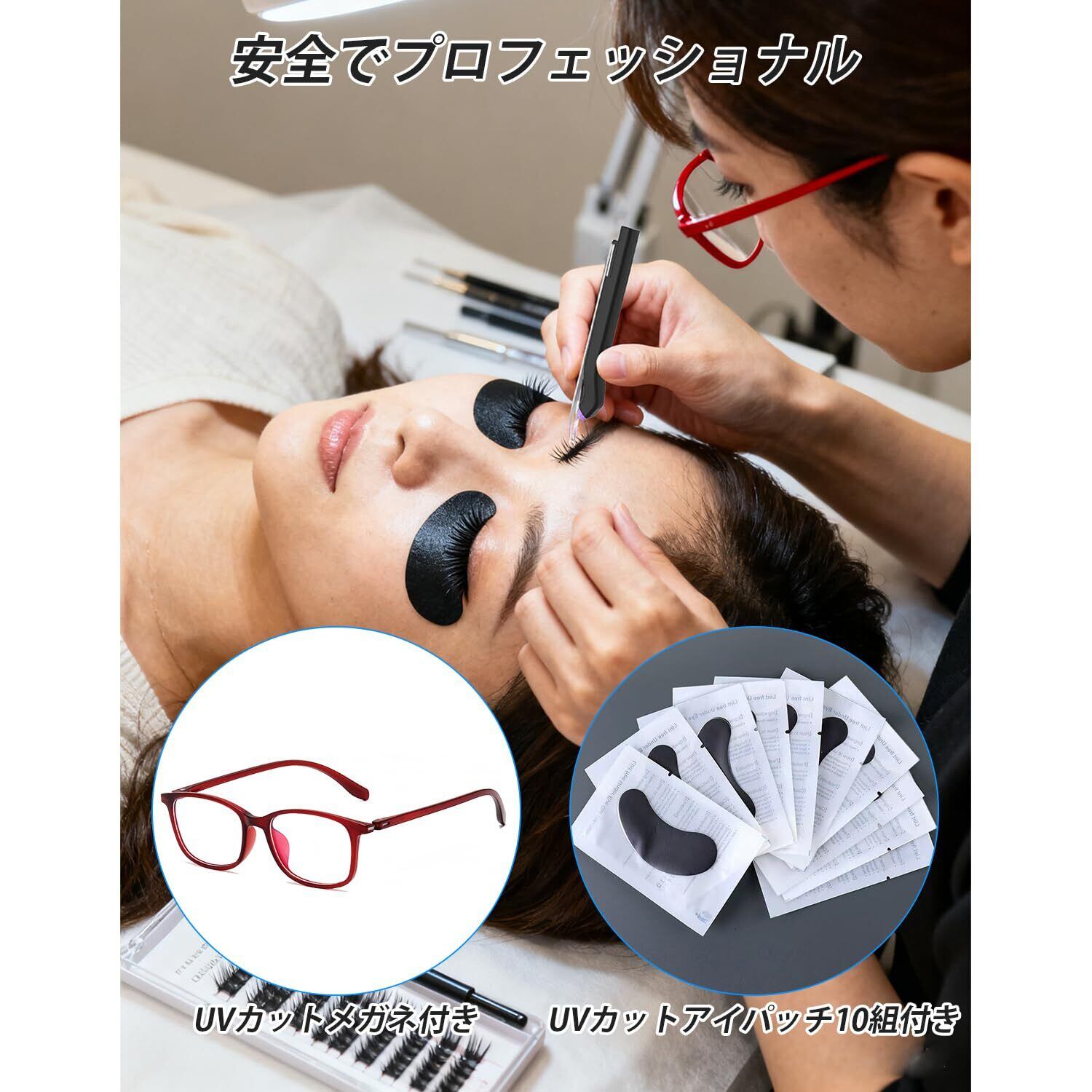 【安全でプロフェッショナル】リスクを軽減するため、ゴーグルとUVカットアイパッチを付属しています。使用中は目を閉じ、光が直接目に触れないようにしてください。まつげエクステランプはUSB-C急速充電技術と省エネLEDライトを採用しており、急速充電で繰り返し使用できるため、経済的で環境にも優しい製品です。お客様のご満足は私たちの最優先事項です。ご質問やご不明な点がございましたら、お気軽にお問い合わせください。ご満足いただけるまで、全力を尽くして問題を解決いたします。