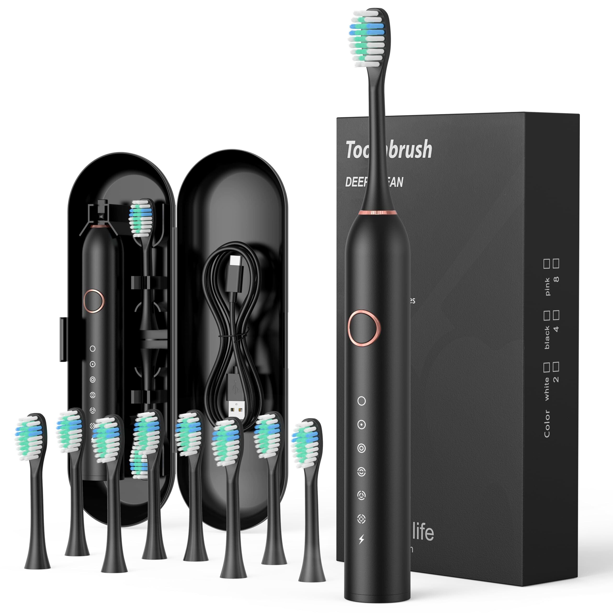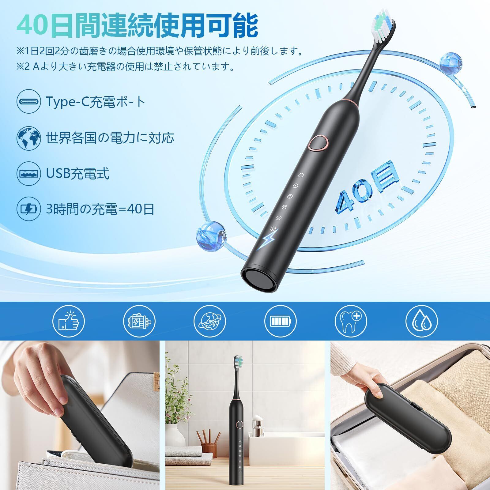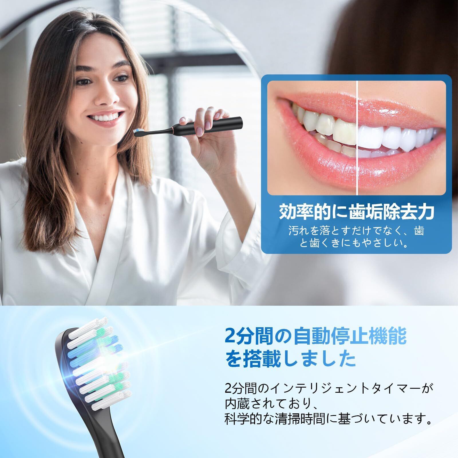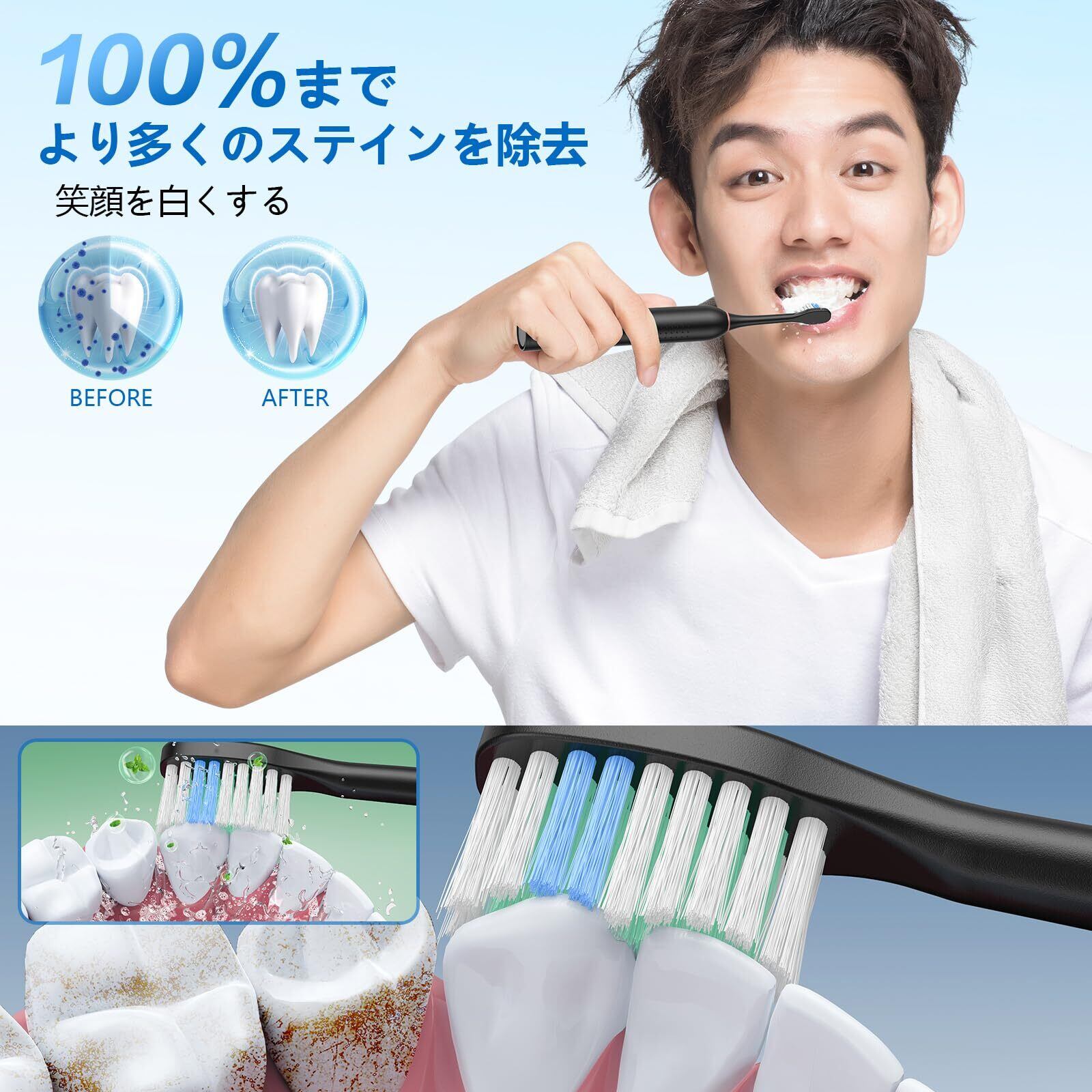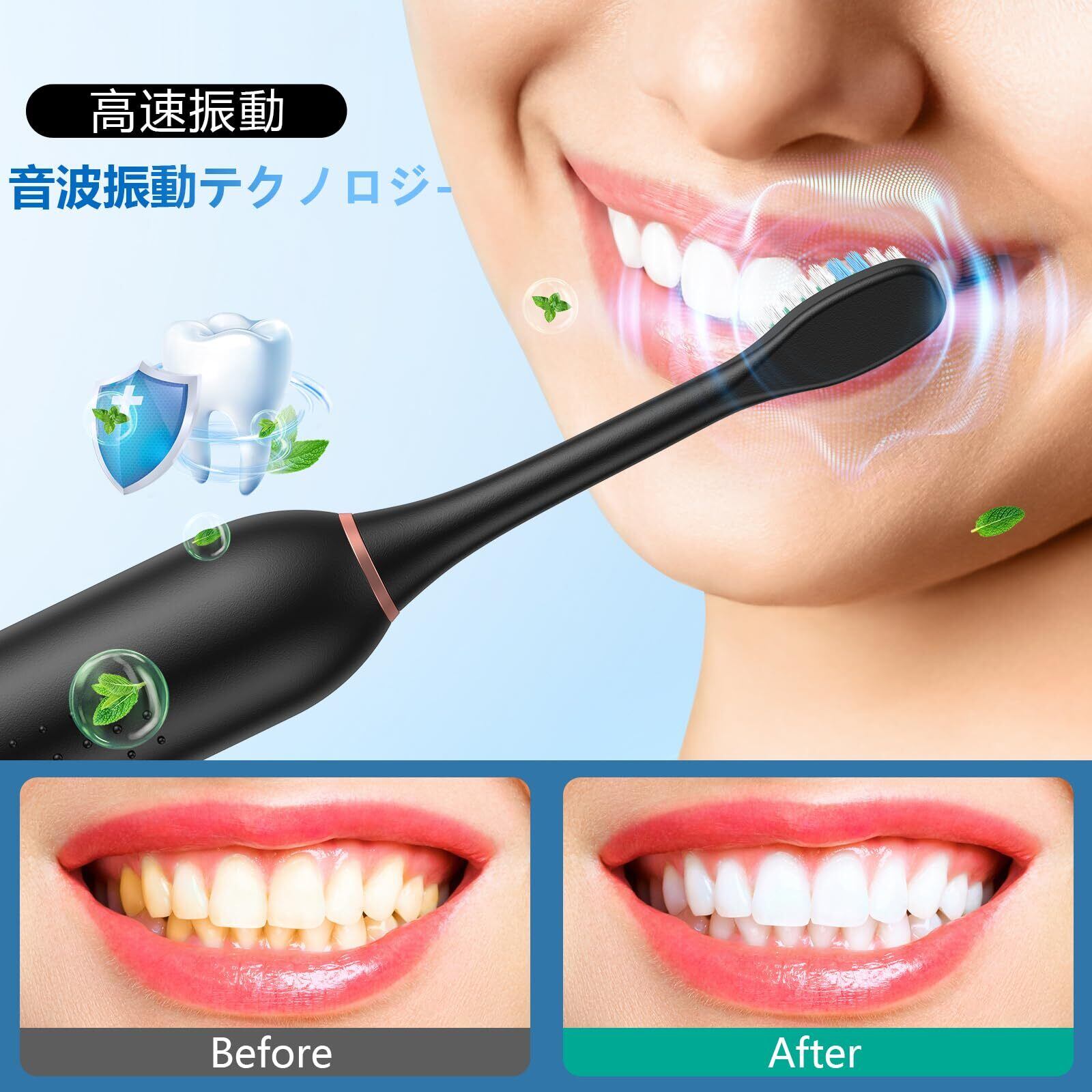 電動歯ブラシ 音波式 電動ハブラシ 横振り IPX7防水 6モード音波歯ブラシ 替えブラシ8本付 充電式 収納ケース付き 2分間オートタイマー機能 携帯便利 旅行 T2