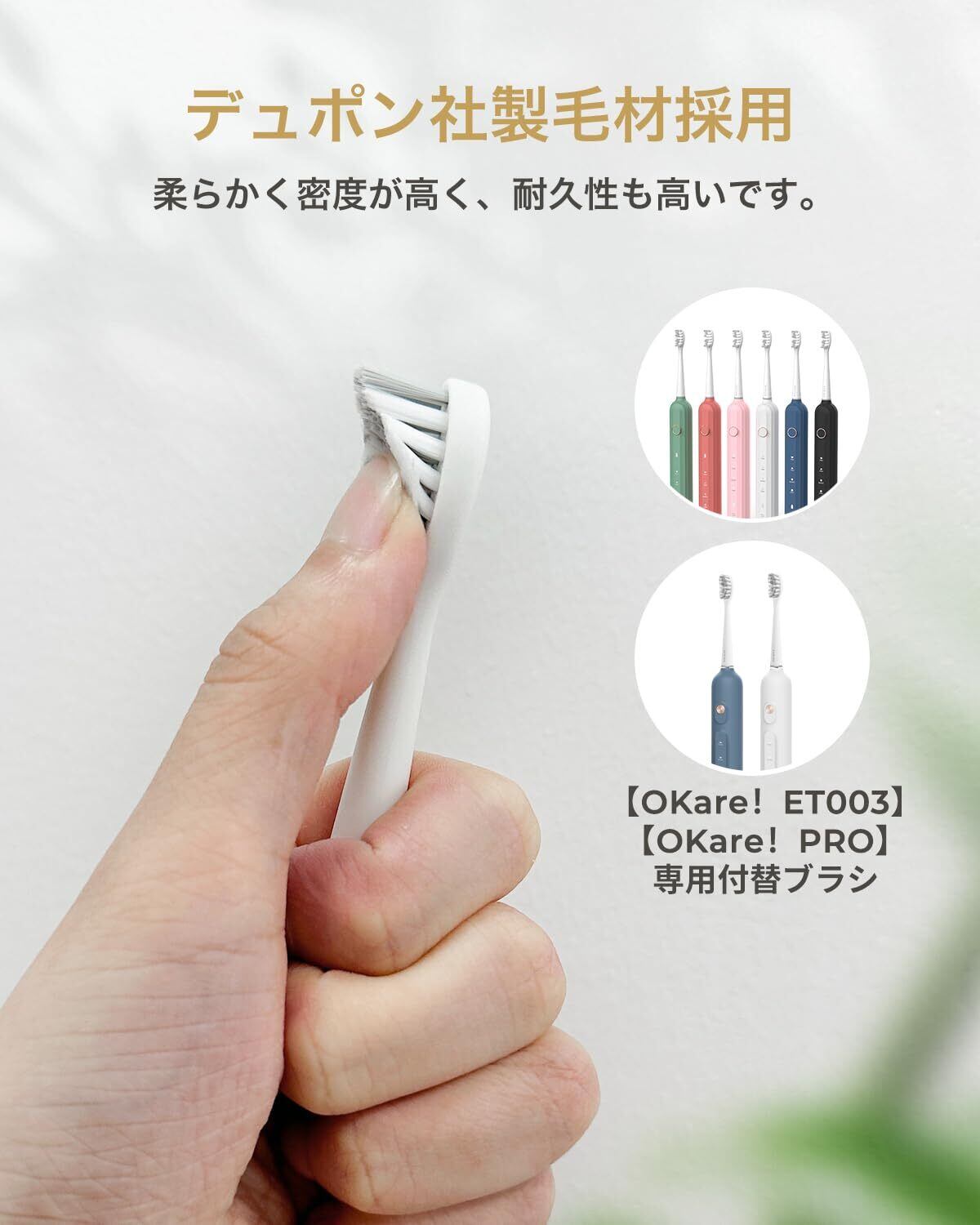 【デュポン社製毛材採用】この商品はエペイオス(Epeios)の電動歯ブラシの交換用付替えブラシで、アメリカのDuPont(デュポン材料)社製の毛材を採用しています。 耐摩耗性と耐久性だけでなく、歯垢を強力に取り除くことができます。