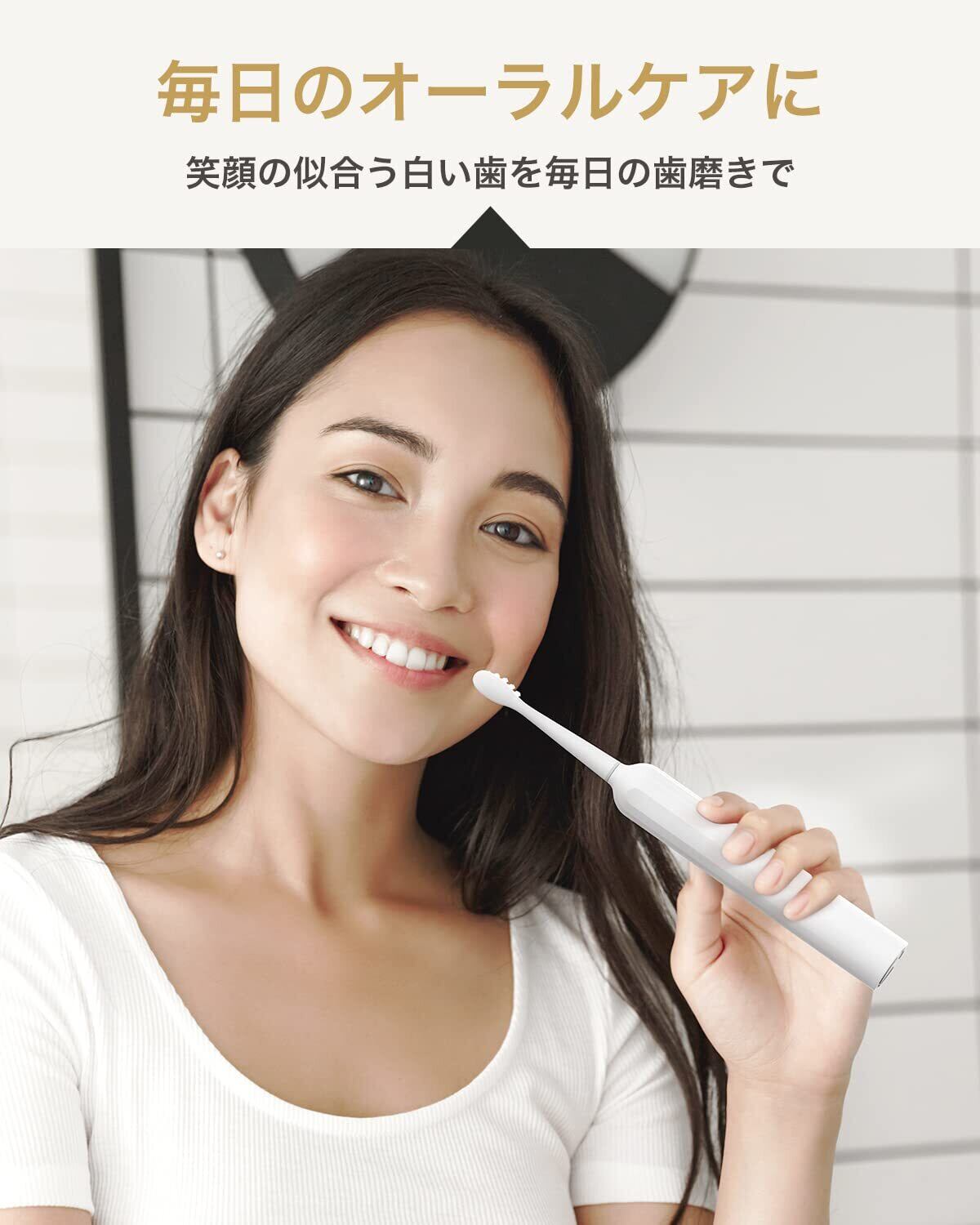 【特徴】振動によって短時間で効率的に汚れを落とし、歯と歯茎を的確にケアします。 先端が丸いブラシを採用しているため、歯茎を傷めることなく優しく歯を磨くことができます。